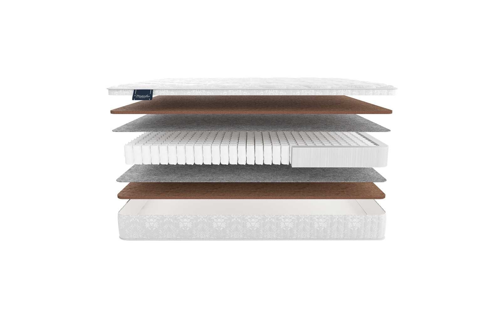 Для ортопедической поддержки и амортизирующего эффекта в центре модели установлен блок пружин. Он состоит из спиралей, которые закреплены особым независимым образом. Это позволяет матрасу оказывать буквально точечную поддержку и способствует перераспределению веса только в нагружаемых зонах.