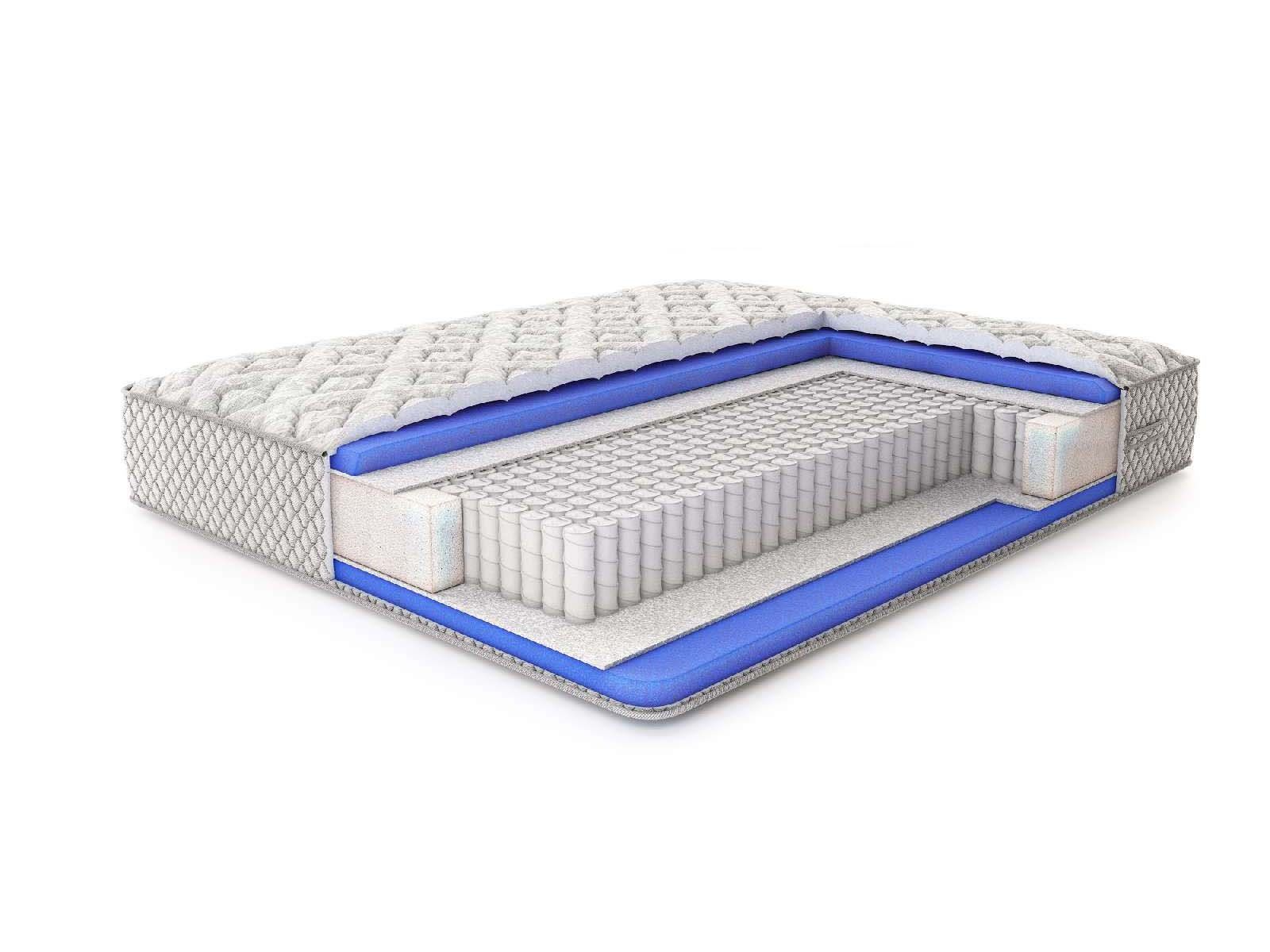 С обеих спальных сторон матраса расположена технологичная пена Elax. Толщина плиты соответствует 5 см. Такой объём лучше всего демонстрирует собственные комфортные характеристики и всецело передаёт их спальному месту.