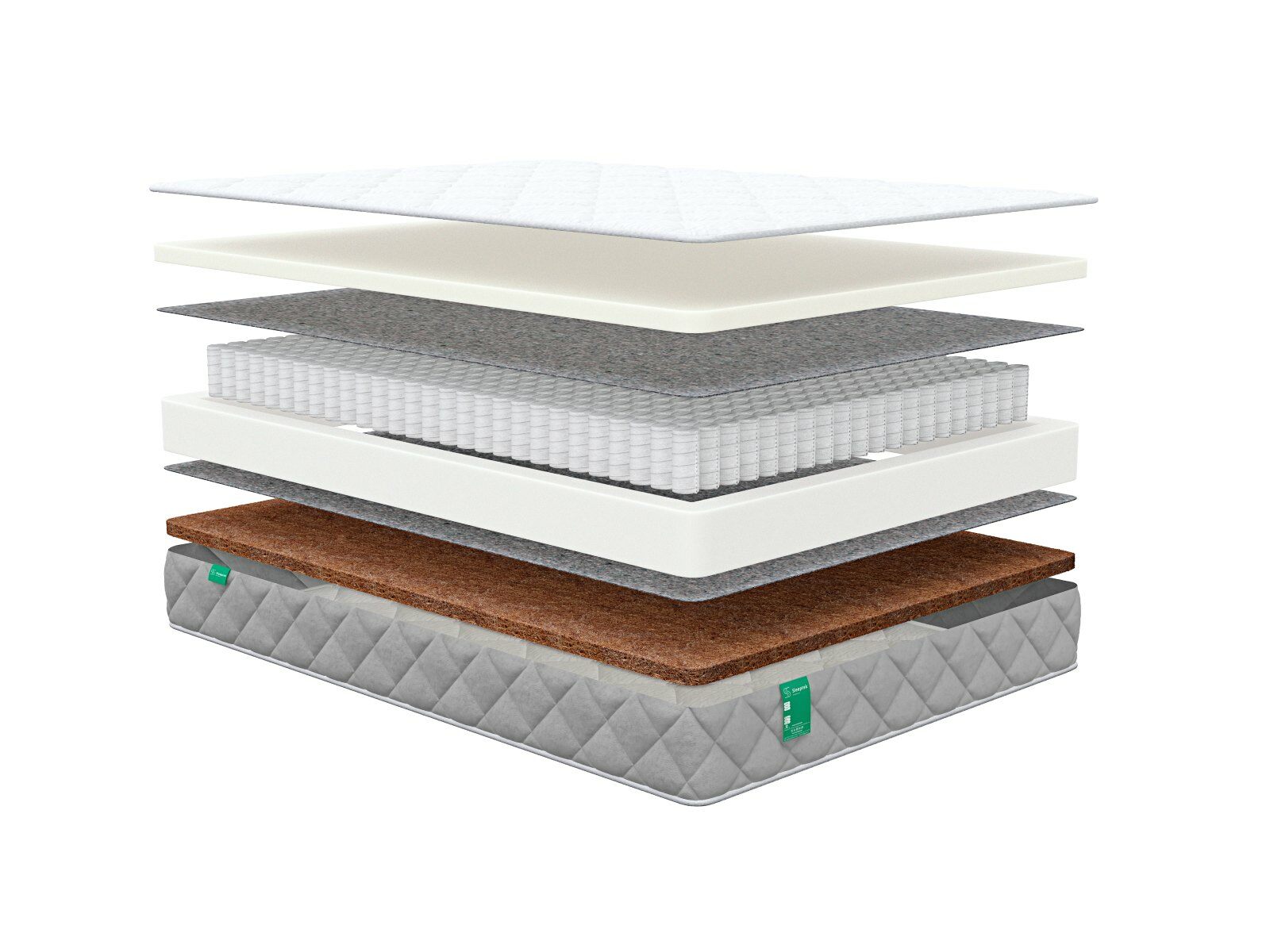 • Более жёсткая спальная поверхность реализована при помощи натурального кокосового слоя. Койра обеспечивает необходимую правильную поддержку для всех отделов позвоночника.