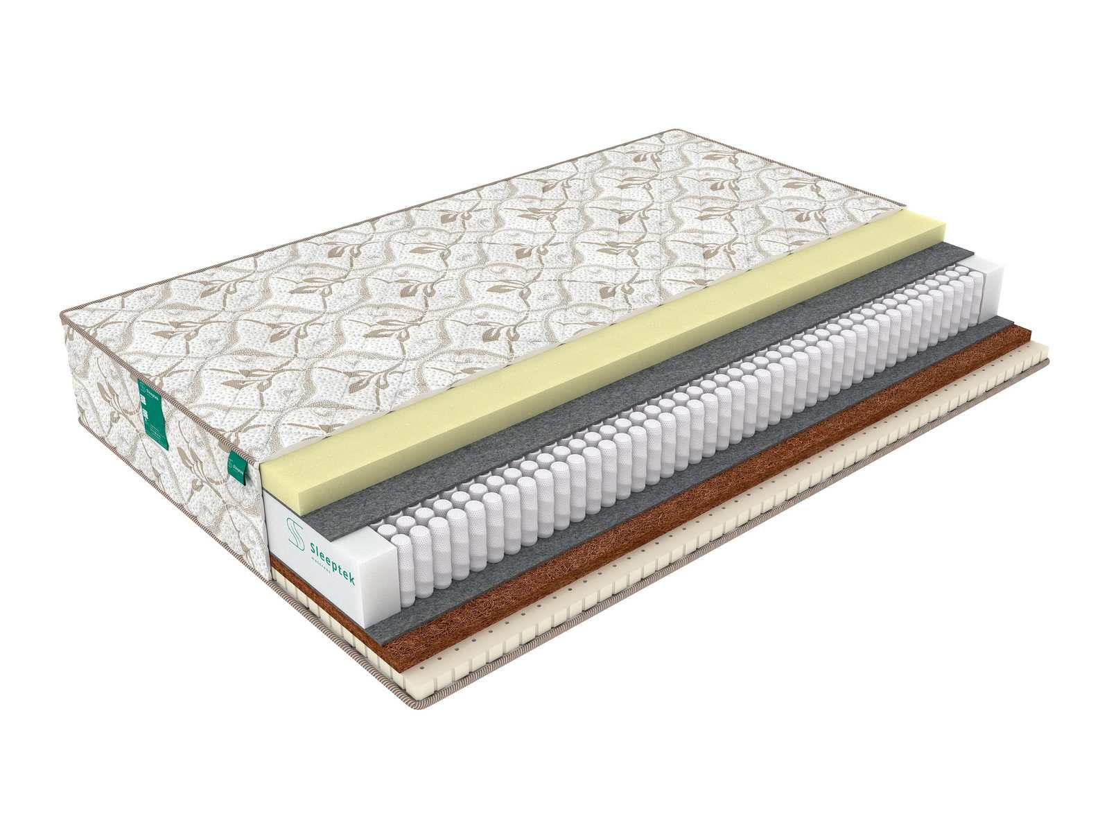 Блок пружин отделен от наполнителей слоями термовойлока,он защищает наполнители от контакта с пружинами и продлевает срок службы матраса.