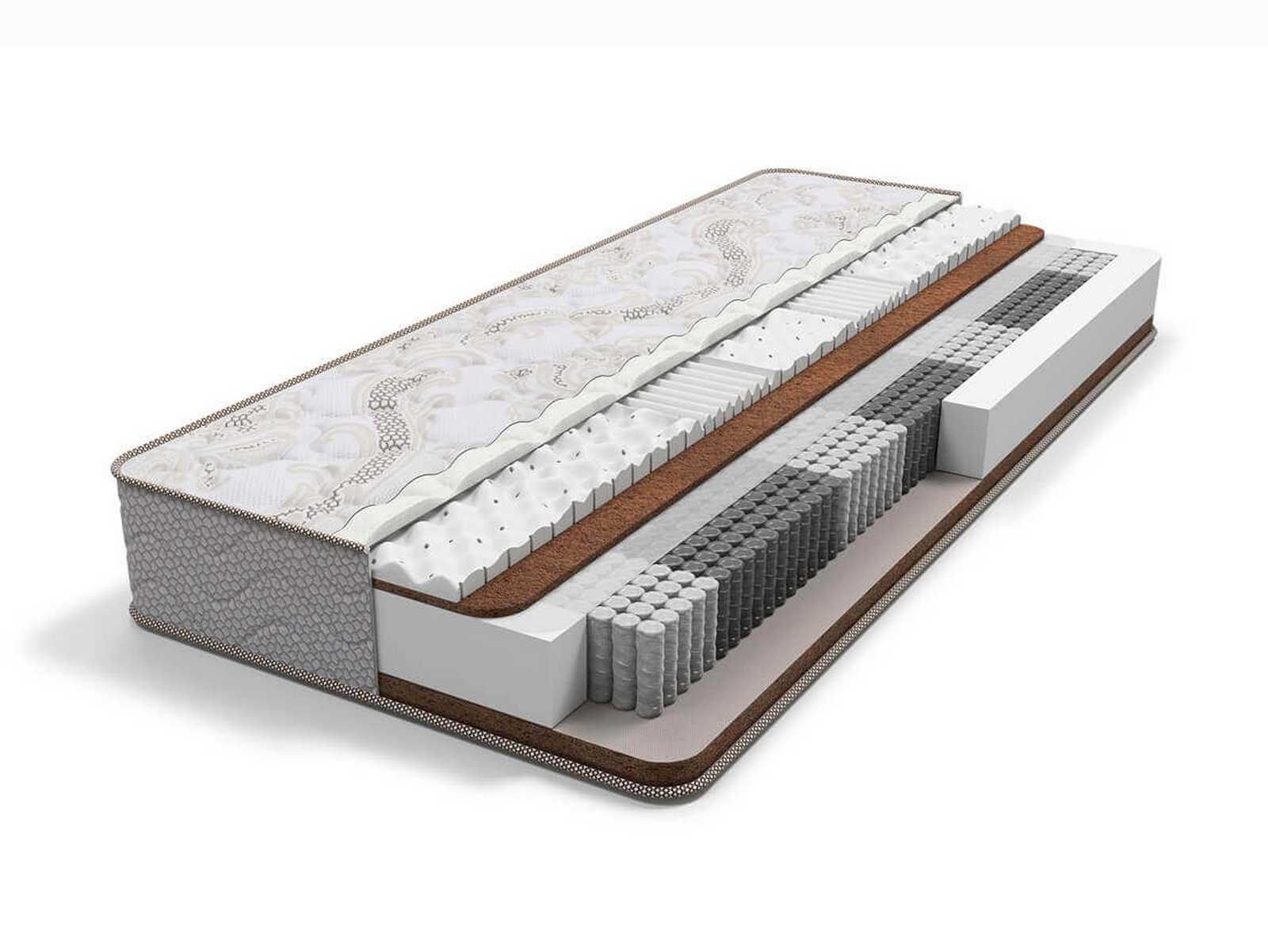Матрас на основе блока независимых пружин MultiPocket. Имеет 7 зон различной степени упругости плотностью 1 000 пружин на спальное место. Благодаря использованию проволоки различного диаметра каждая из зон получает опору соответствующей для нее жесткости, обеспечивая правильное распределение нагрузки. Матрас с разной жесткостью сторон на основе натуральных наполнителей. С одной стороны кокосовая койра в комбинации с натуральным латексом обеспечивают среднюю жесткость, а кокосовая койра с другой стороны обеспечивает максимальный ортопедический эффект благодаря повышенной жесткости.