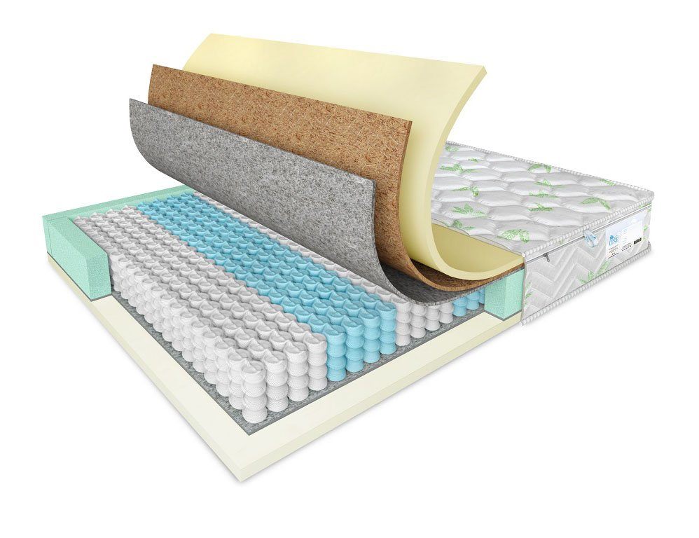 Наполнителями для матраса выступают натуральный и искусственный латекс, а также койра кокоса. Каждая из сторон обладает собственной жёсткостью, что делает матрас очень удобным аксессуаром. Переворачивая изделие на ту или иную сторону, вы получаете умеренно-мягкую и среднюю жёсткости.