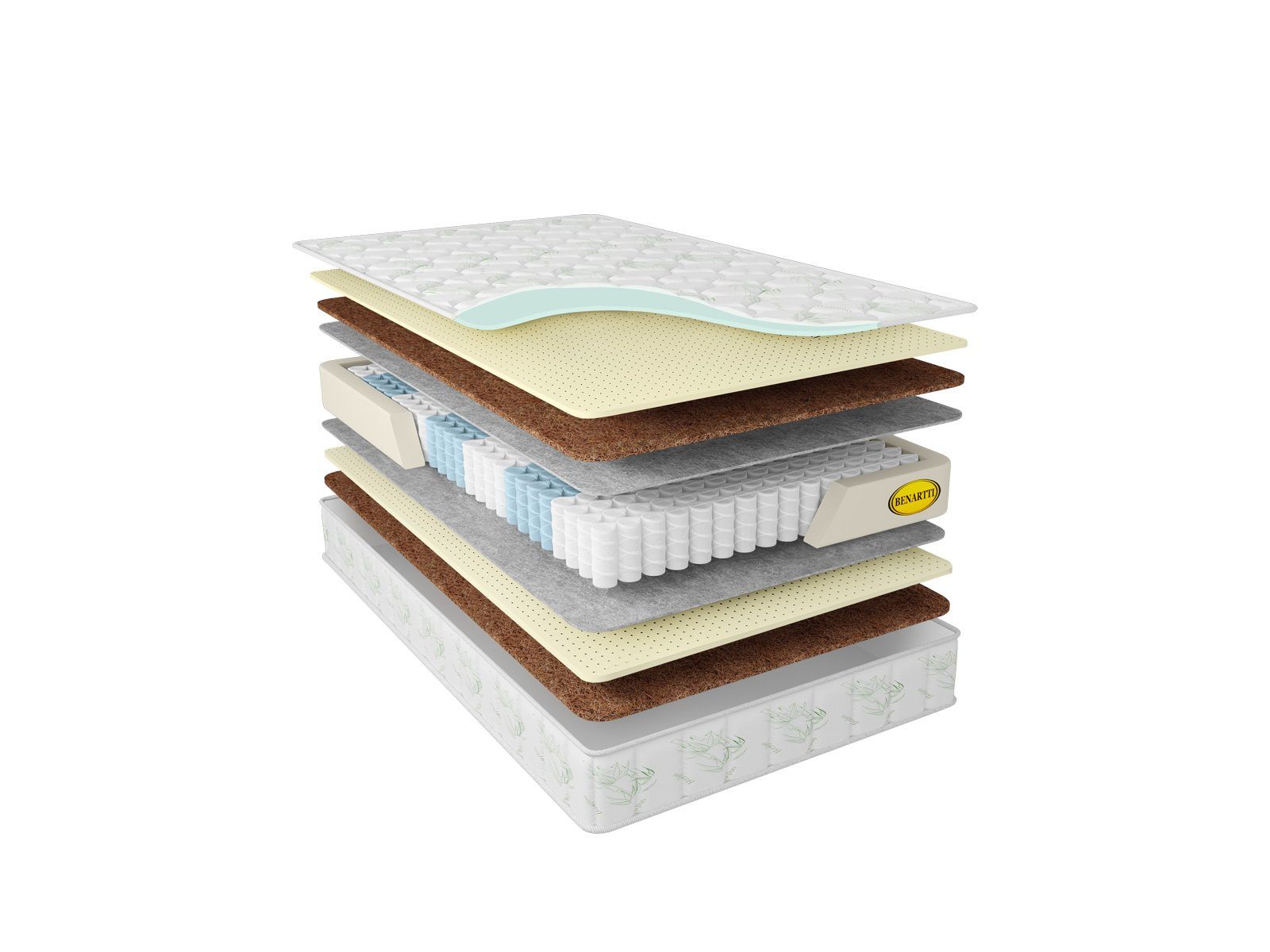Матрас Benartti Memory Mini Cocos Duo S1200 является одной из самых доступных моделей серии. Данное изделие обеспечено натуральным наполнением и специальным увеличенным пружинным блоком. Благодаря такому комплекту матрасу передаются и ортопедические, и анатомические качества.