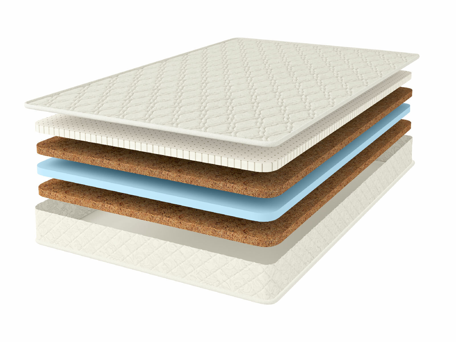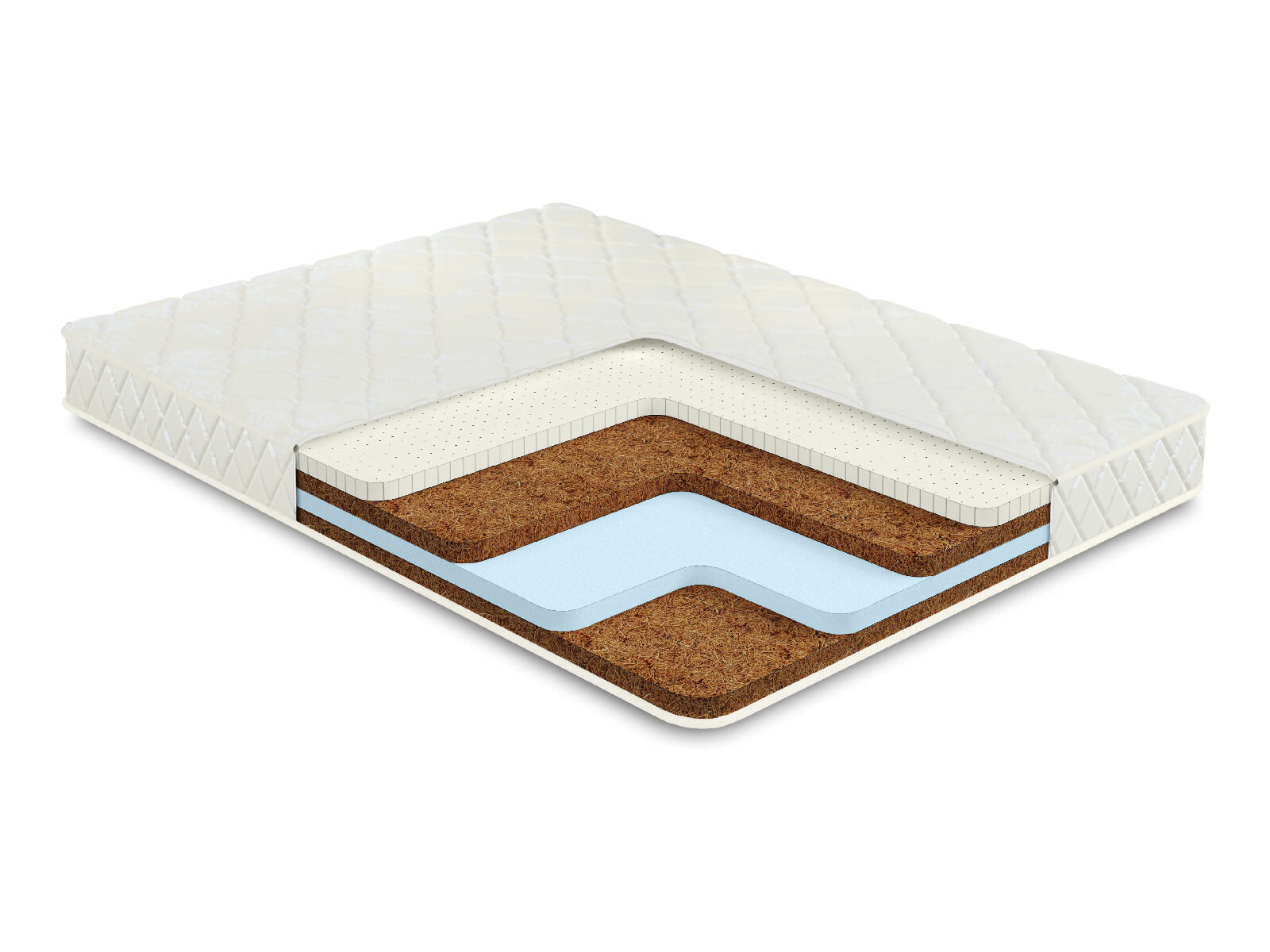Кокосовое волокно с натуральным латексом придает жесткость, экологически чистый материал, который прекрасно вентилируется.