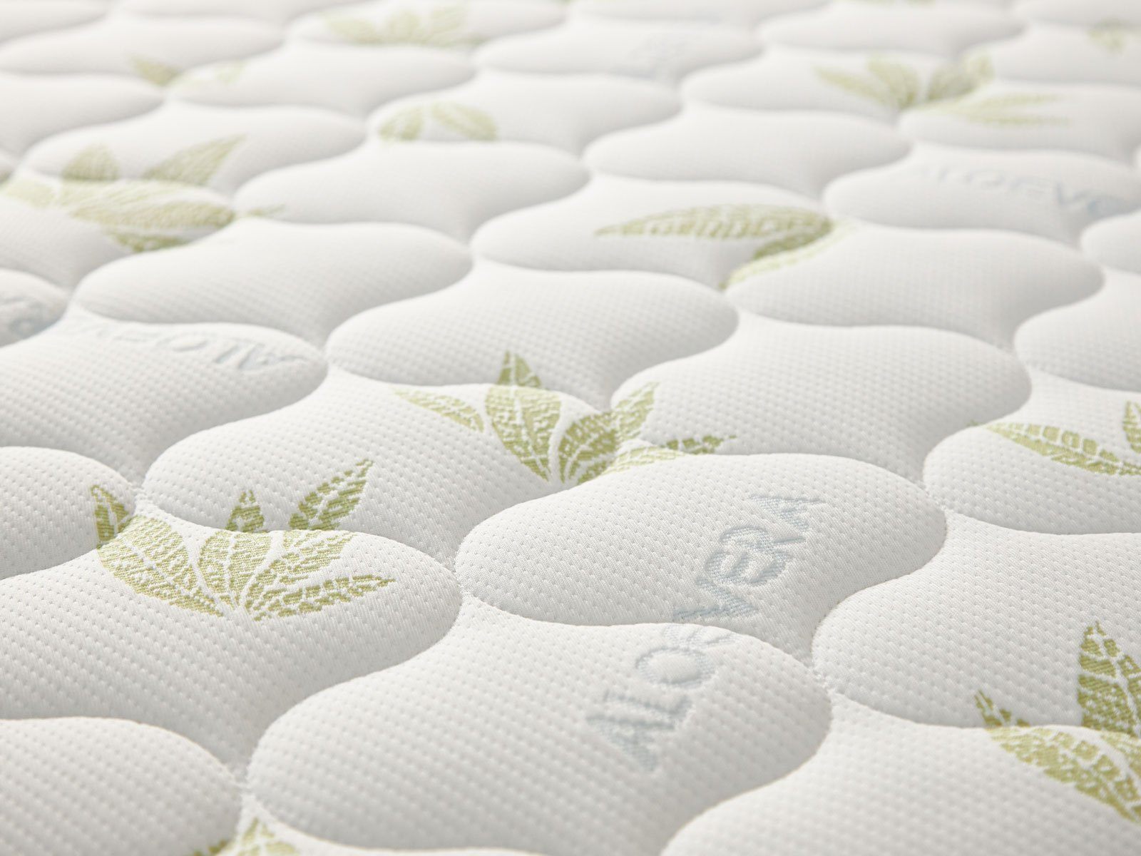 Матрас изготовлен в несъёмной обивке из трикотажа «Алое». Ткань простёгивается вместе с 200 гр синтепона, поэтому поверхности имеют мягкий и приятный к телу рельеф.