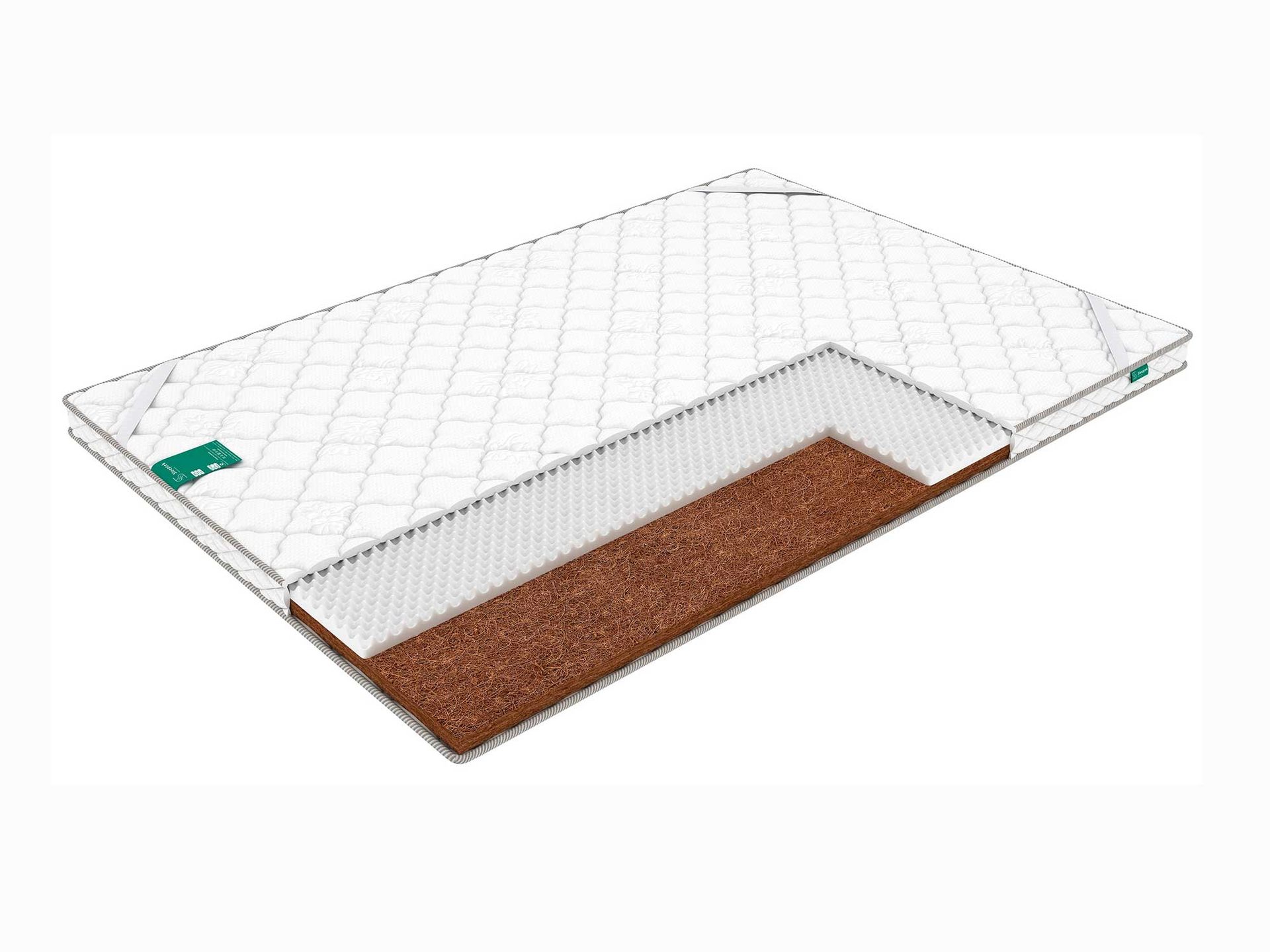 Койра кокоса служит здесь как уплотняющий слой. Материал характеризуется твёрдостью. Он изготавливается из растительных волокон и пропитывается латексным составом, который придаёт слою гибкости. В результате полотно обретает ортопедические характеристики и хорошо поддерживает спину.