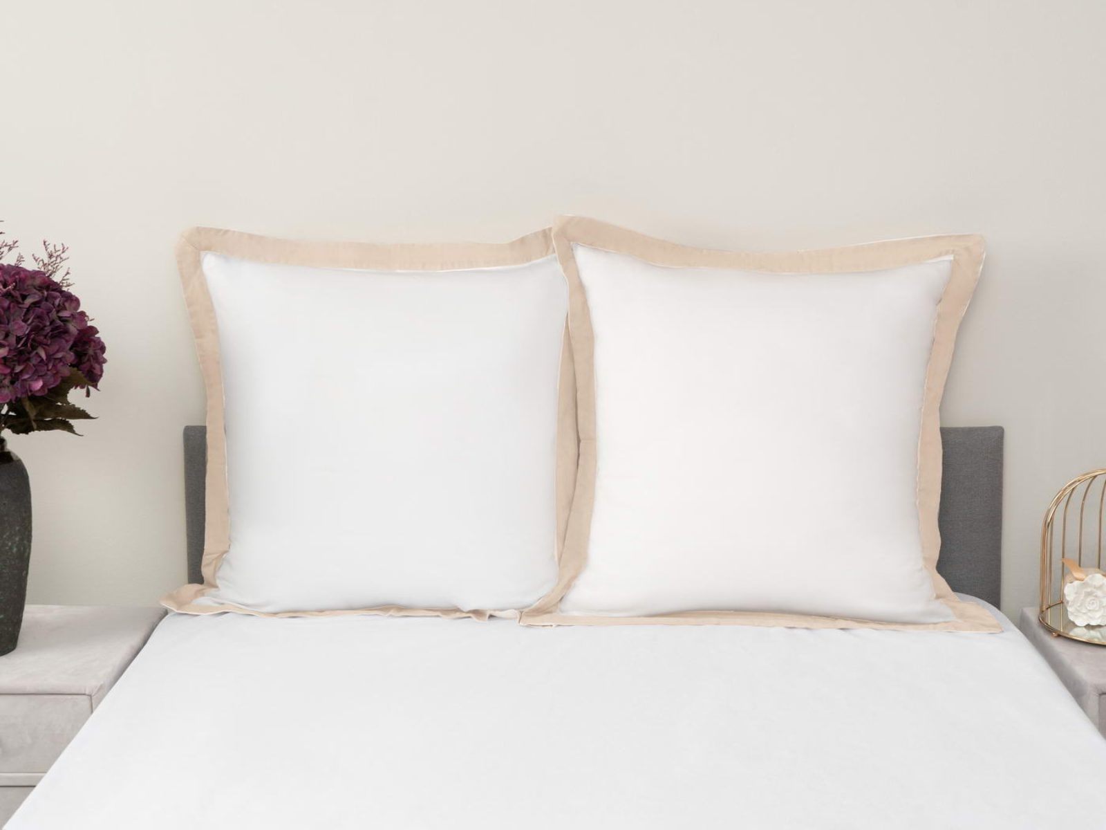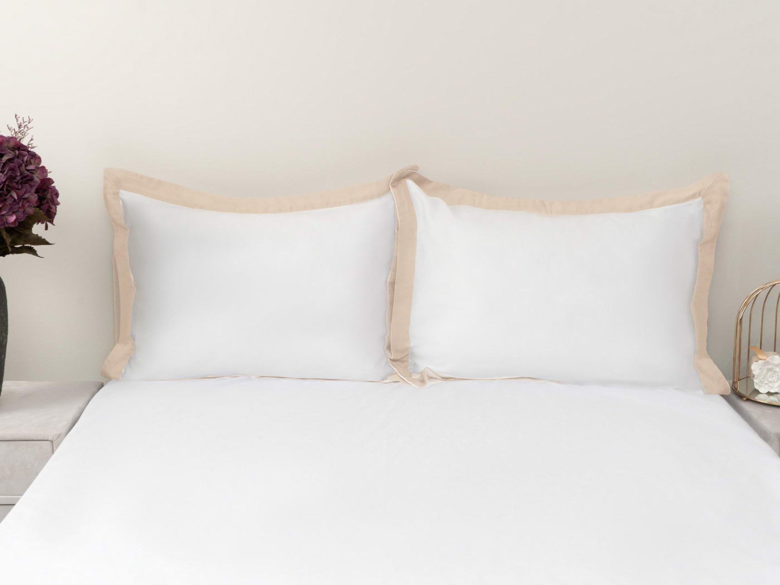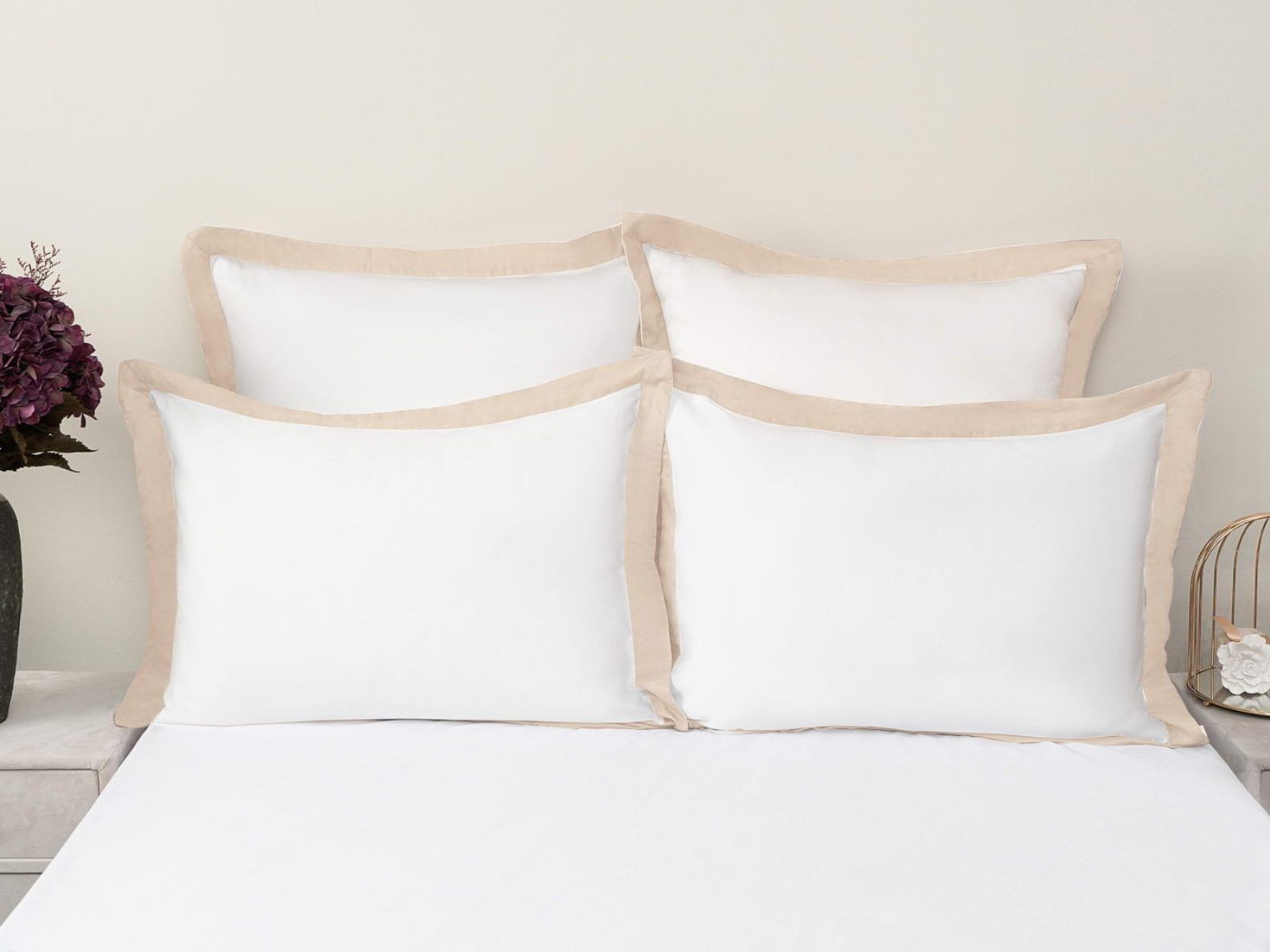 Особенность: белые наволочки декорированы контрастными цветными ушками 5 см с четырех сторон. Наволочки на запахе.
