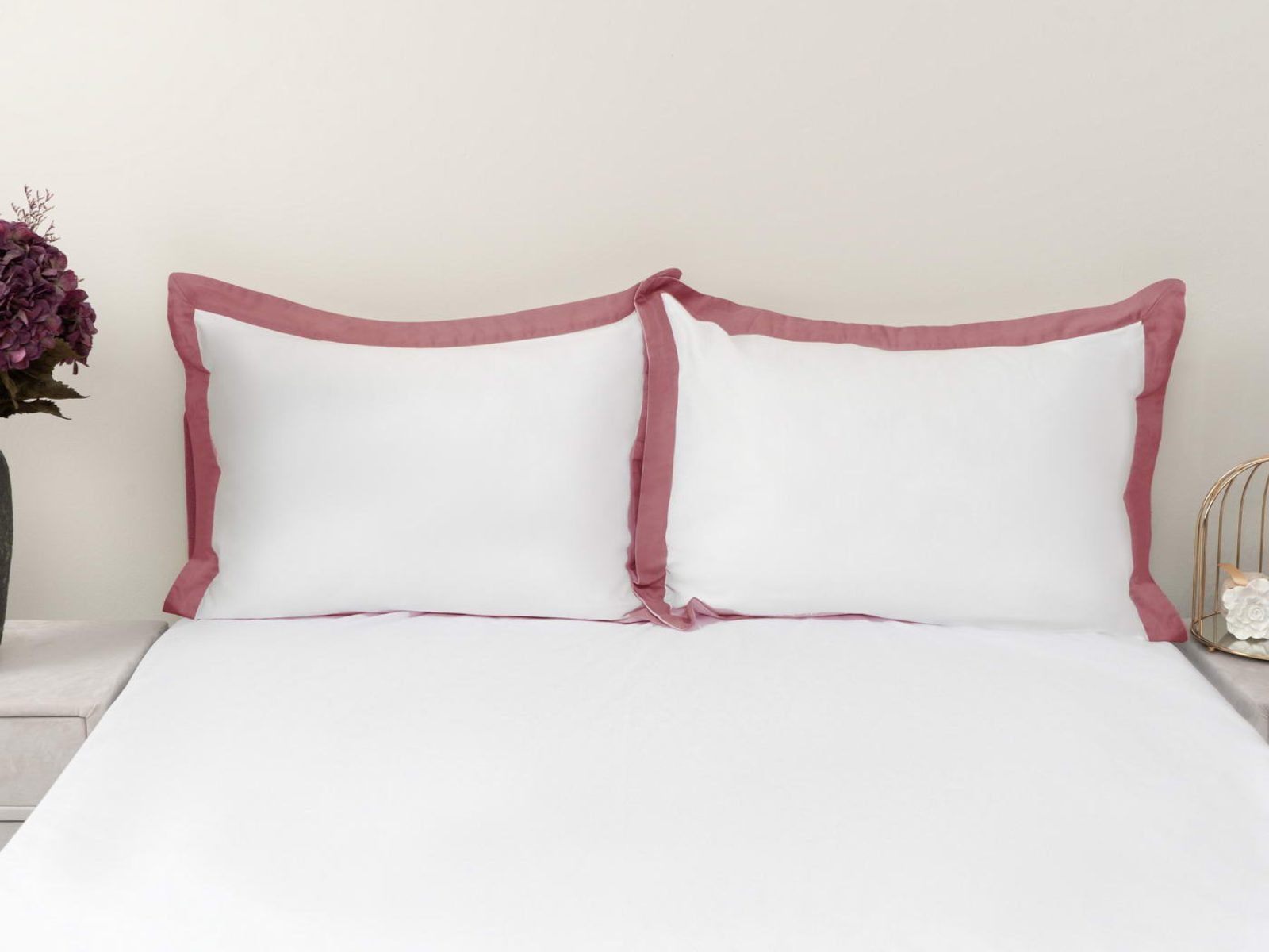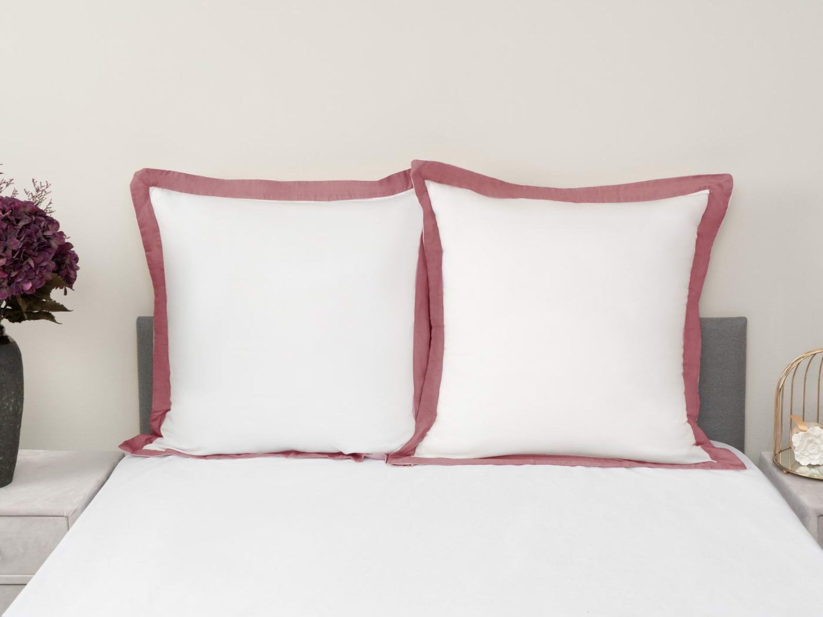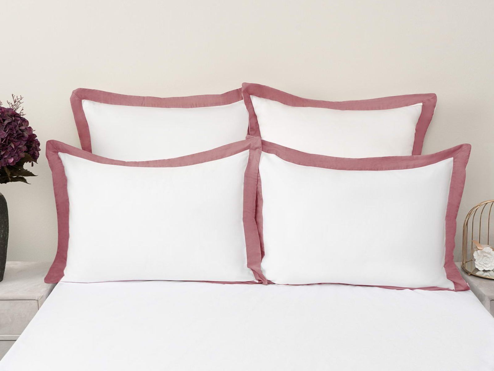 Особенность: белые наволочки декорированы контрастными цветными ушками 5 см с четырех сторон. Наволочки на запахе.
