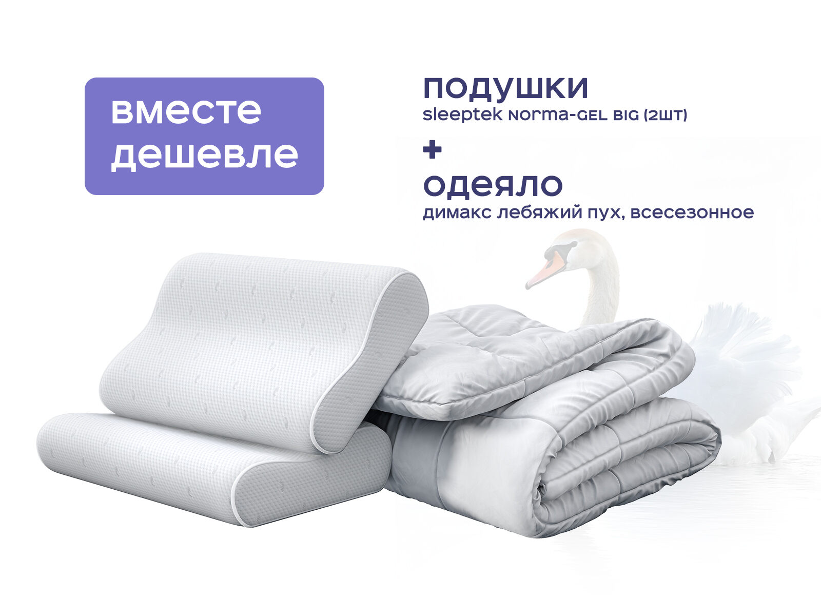 Комплект одеяло Димакс Лебяжий пух всесезонное + подушка Sleeptek Norma-GEL BIG 2 шт. – ваш набор для идеального сна с выгодой до 40%. Представьте: вы ложитесь в постель, и сразу чувствуете, как напряжение тает. Одеяло из лебяжьего пуха, как облачко, обволакивает тело, а подушки Sleeptek Norma-GEL, словно волны прохладного океана, окутывают шею и голову. Это не просто набор для сна — это система, созданная для тех, кто мечтает о комфорте без границ.