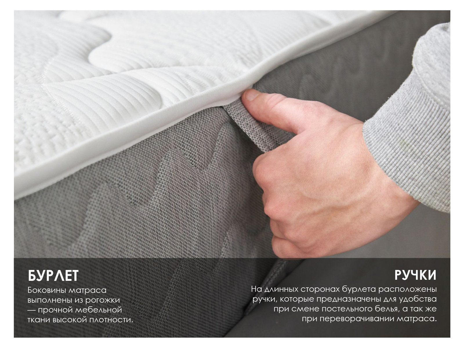 Чехол у матраса выполнен из приятной трикотажной ткани в светло-молочном оттенке. Для стёжки реализован плотный синтепон в союзе с пеной Balance. Наполнители смягчают поверхности матраса и делают их ещё более комфортными. Прочный спанбонд выступает фиксирующим слоем, который усиливает конструкцию обивки. Все слои формируют 4D Original – четырёхслойную обивку повышенного комфорта.