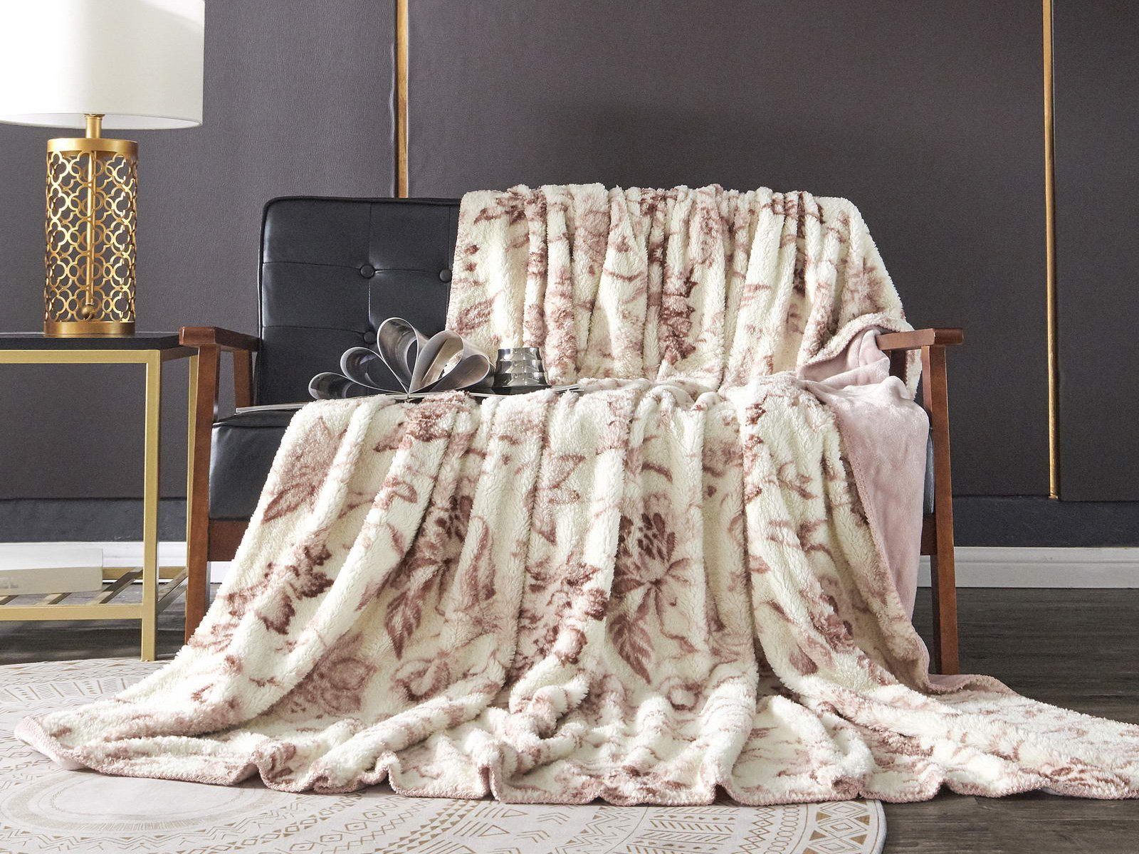 Плед двусторонний: с одной стороны однотонный, с другой - рисунок прованс.