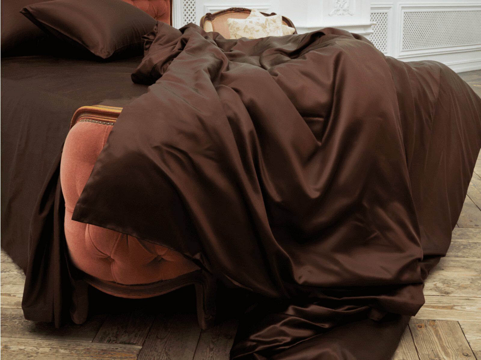 * Шелковое постельное белье, при длительном тактильном контакте, когда аминокислоты и белки, входящие в состав натурального шелка, оказывают благотворное воздействие на кожные покровы и волосы человека, станет настоящим подарком Вашему здоровью.