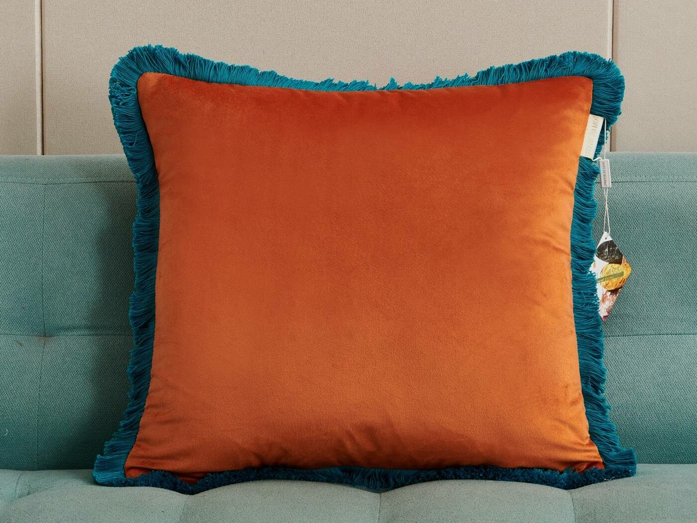 Коллекция пошита из мягкого и приятного на ощупь велюра плотностью 250г/м2. Наволочки с контрастной хлопковой бахромой добавят ярких акцентов и жизнерадостности в ваш интерьер. Большой выбор расцветок поможет расставить цветовой акцент и подчеркнет индивидуальность Вашей гостиной.