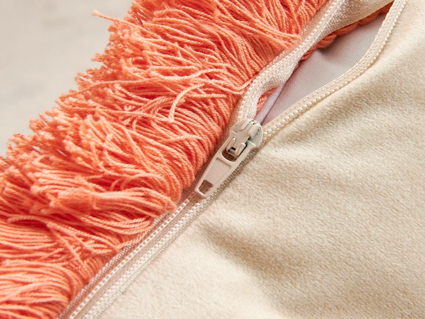 Особенность : с бахромой, потайная молния под цвет вшита в край наволочки.