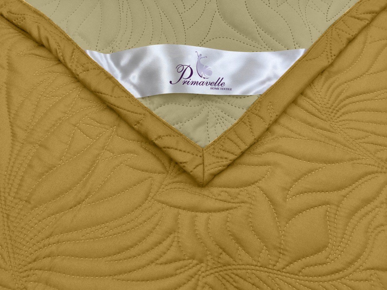 Покрывало Arti с оригинальной стежкой Листья в ультрамодном золотом цвете будет органично смотреться в любом интерьере. Изделие выполнено из современной ткани Биософт™ с бархатистой фактурой. Ткань не только приятная на ощупь, но и очень практичная. Благодаря ей покрывало обладает хорошей гигроскопичностью, хорошо сохраняет форму и быстро сохнет. Изделие изготовлено по уникальной технологии безниточной стежки Ультрастеп™, которая придает ему особую прочность и продлевает срок службы. Современный дизайн стежки в сочетании с благородными цветами идеально впишется в интерьер Вашей спальни.