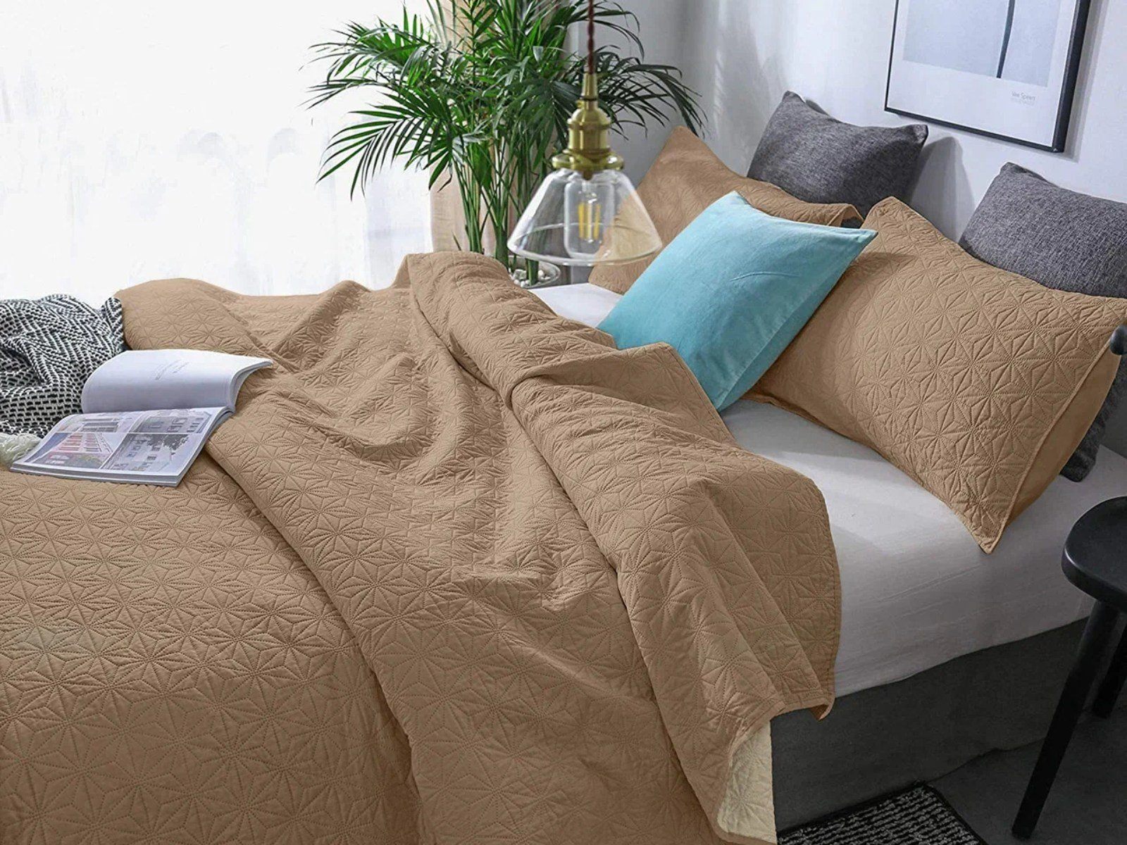 Покрывало Pallada выполнено из гипоаллергенной ткани Биософт™. Ткань с бархатистой на ощупь фактурой, достаточно плотная, прочная и не оставляет зацепок. Безниточная стежка Ультрастеп™ в виде звезд образует уникальный рельеф на однотонной ткани. Технология скрепления Ультрастеп™ не только надежно фиксирует наполнитель, но и исключает роспуск стежки, что значительно продлевает срок службы покрывала.