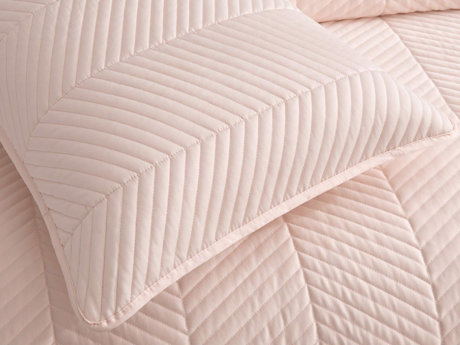 Стёганое дышащее покрывало Адонис на 70% состоит из хлопка и на 30% из вискозы. Ткань изделия гладкая и приятная на ощупь. Декоративный кант и ритмичный «елочный» рисунок, выступающий над поверхностью, придают покрывалу игривый утонченный вид.