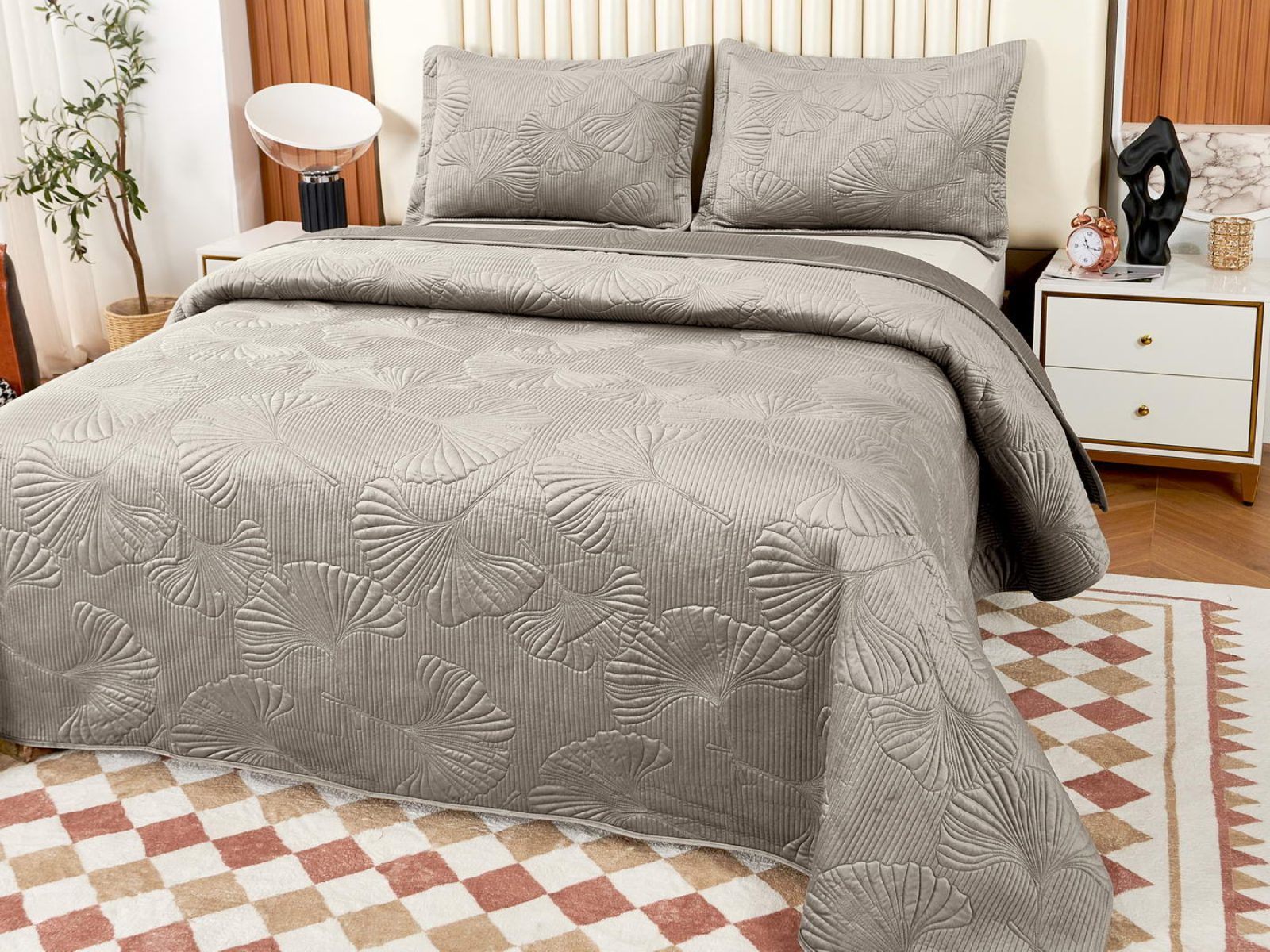В комплект входят покрывало и одна либо две наволочки (50х70 см) из аналогичного материала в зависимости от размера. Каждый набор заботливо упакован в фирменную подарочную сумку.Пошив покрывала с кантом, наволочки с ушками 5 см. Наволочки на запахе. Вышивка на всем изделии.