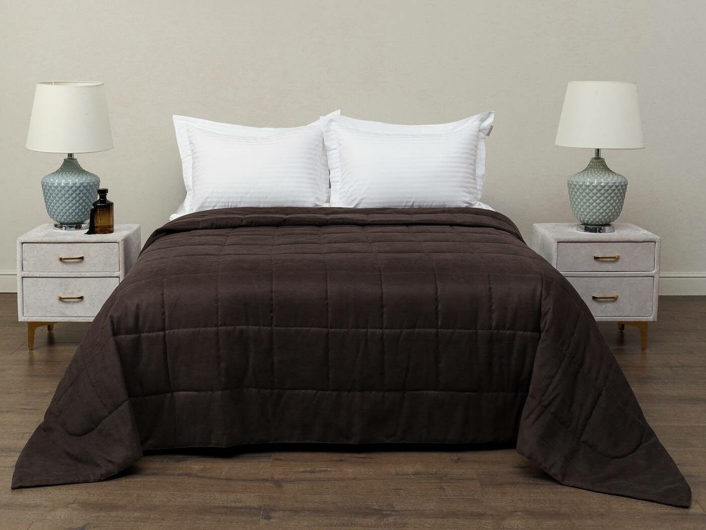 Ткань верха – бархатистый канвас. Канвас отлично себя зарекомендовал как износостойкий и плотный материал обеспечивающий мягкий противоскользящий эффект. Покрывала имеют классическую для канваса машинную стежку «квадрат». Плотная и мягкая фактура ткани канвас не оставляет зацепок, изнаночная сторона выполнена из матового и нежного тика. Такое покрывало украсит собою спальную или гостиную комнату, органично подчеркнет Ваш утонченный стиль.
