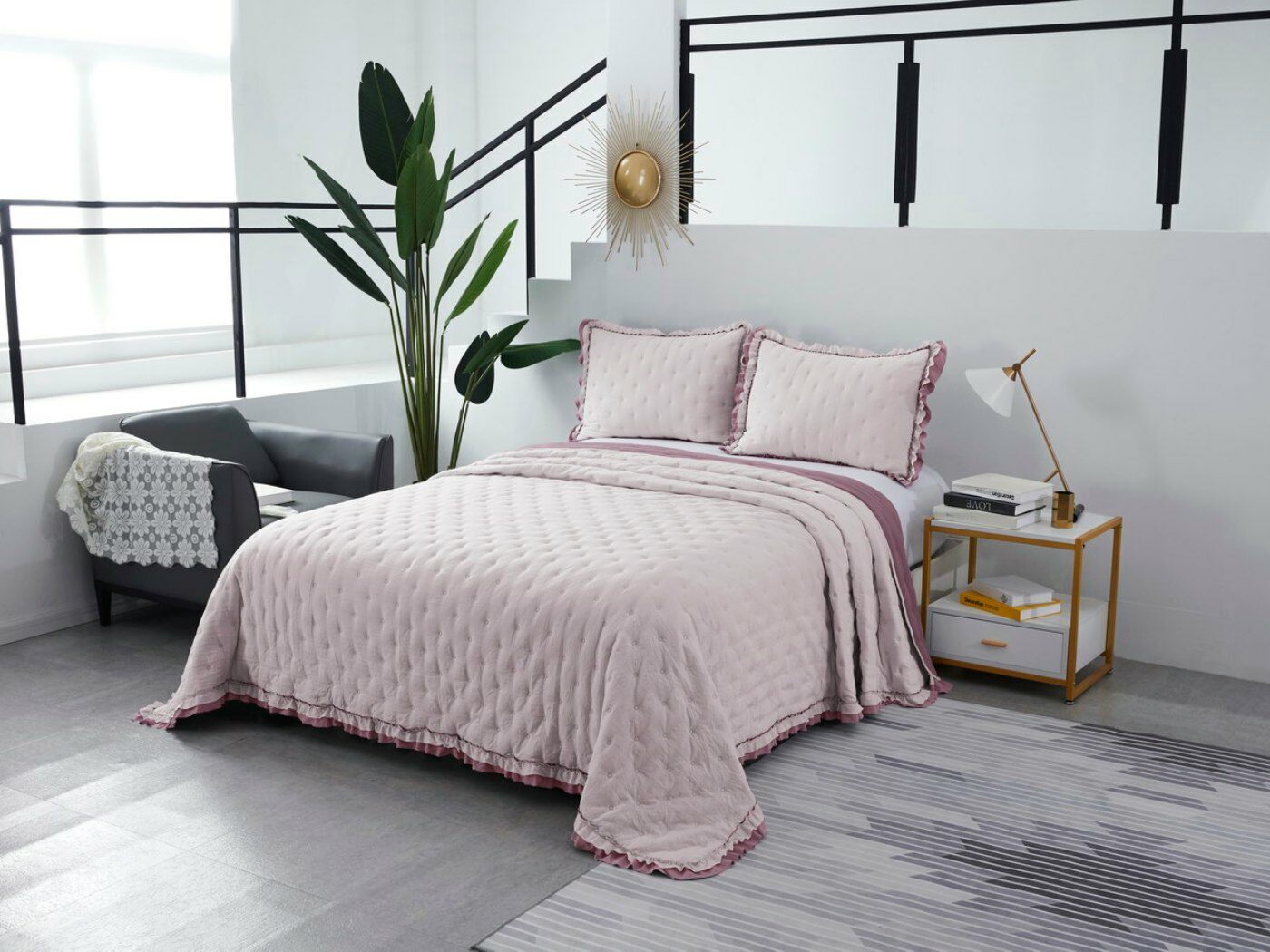 Двусторонние стеганные покрывала Элизабет выполнены из вискозы и хлопка, они легкие и прочные. В комплекте с покрывалом идут две наволочки, вы можете использовать покрывало по назначению, либо в качестве постельного белья. В любом случае, вы будете в восторге от этого комплекта!