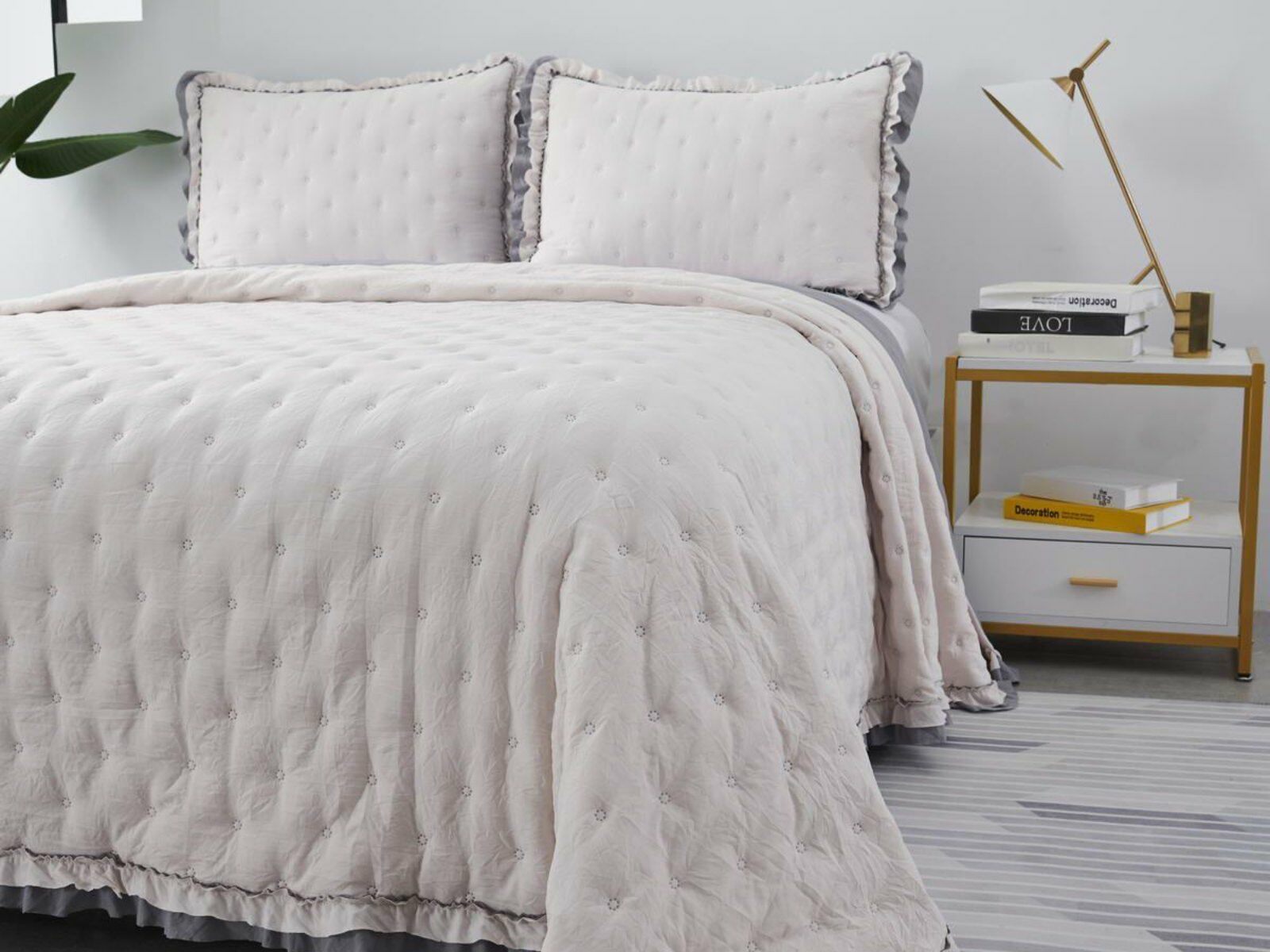 Двусторонние стеганные покрывала Элизабет выполнены из вискозы и хлопка, они легкие и прочные. В комплекте с покрывалом идут две наволочки, вы можете использовать покрывало по назначению, либо в качестве постельного белья. В любом случае, вы будете в восторге от этого комплекта!