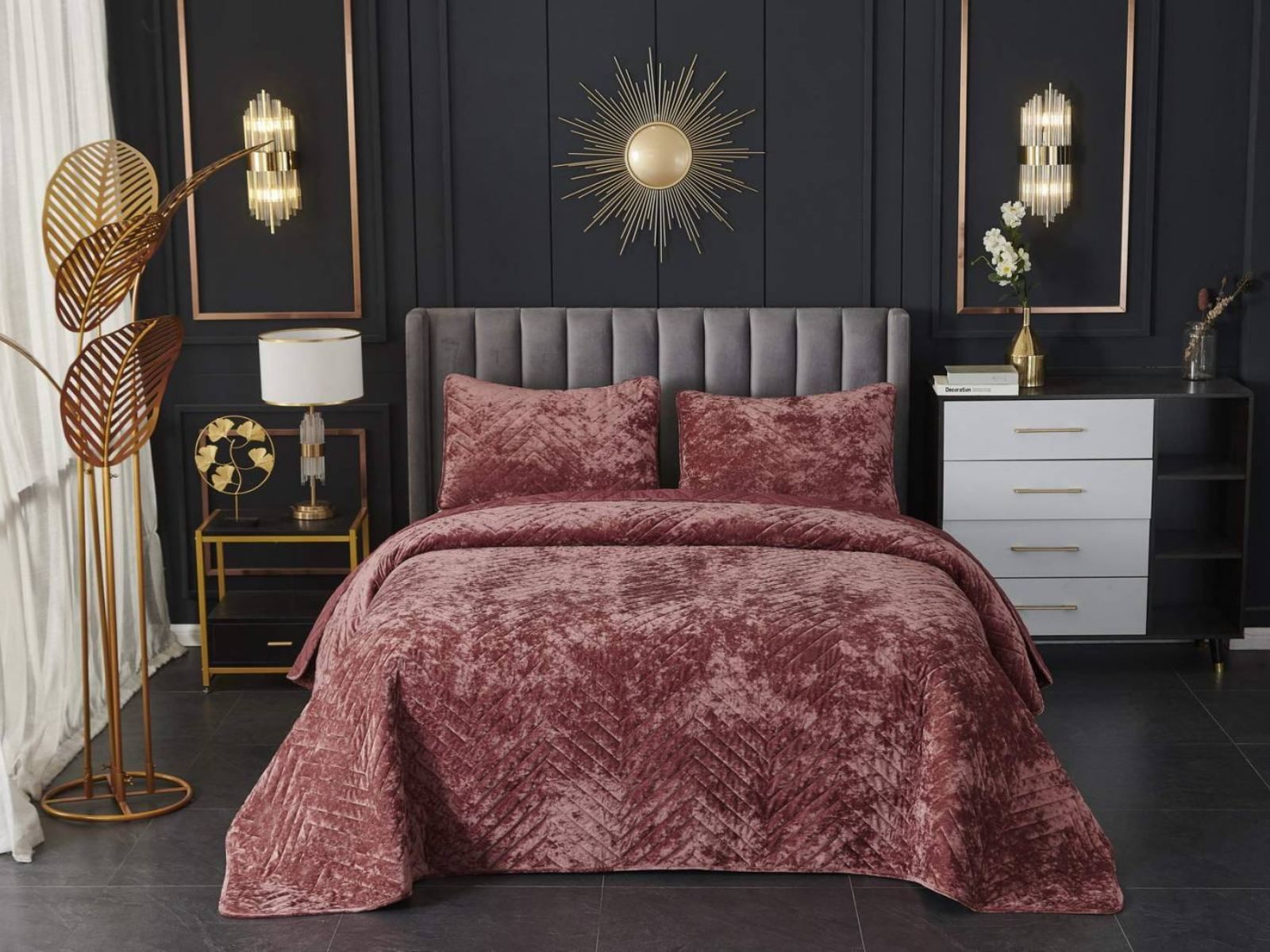 Покрывала Фернанд выглядят как будто сошли с картин, изображающих королевские покои. Бархатную ткань начали изготавливать еще в Средние века, её использовали в оформлении дворцов и изготавливали плащи и головные уборы для знати. Теперь и вы можете прикоснуться к этой роскоши! Бархатная текстура приятная на ощупь, а из-за особого плетения ткани, игра света на ней выглядит благородно. Поэтому покрывало Фернанд создаст необычайно уютную атмосферу в вашей спальне. Цветовая гамма разнообразна и включает восемь благородных оттенков: капучино, бежевый, изумруд, горчичный, терракотовый, пепельная роза, серый, стоун. За покрывалом Фернанд легко ухаживать: стирка при температуре 30 градусов, вручную или в машинке. Важно хорошо просушить изделие! При правильном уходе вещь прослужит долгие годы не потеряв форму и цвет.