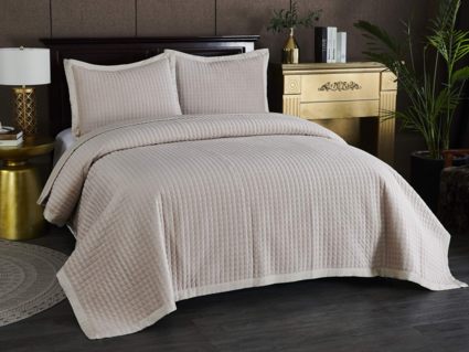 Стеганые покрывала Лоретта выполнены с окантовкой в тон основному цвету. Они не только эффектны, но и практичны: не требуют специального ухода благодаря тому, что изготовлены из современных материалов. Покрывала хорошо держат форму даже после долгого использования, не тянутся и не линяют. Их можно стирать в обычной стиральной машине, в режиме бережной стирки при температуре не выше 30 градусов.