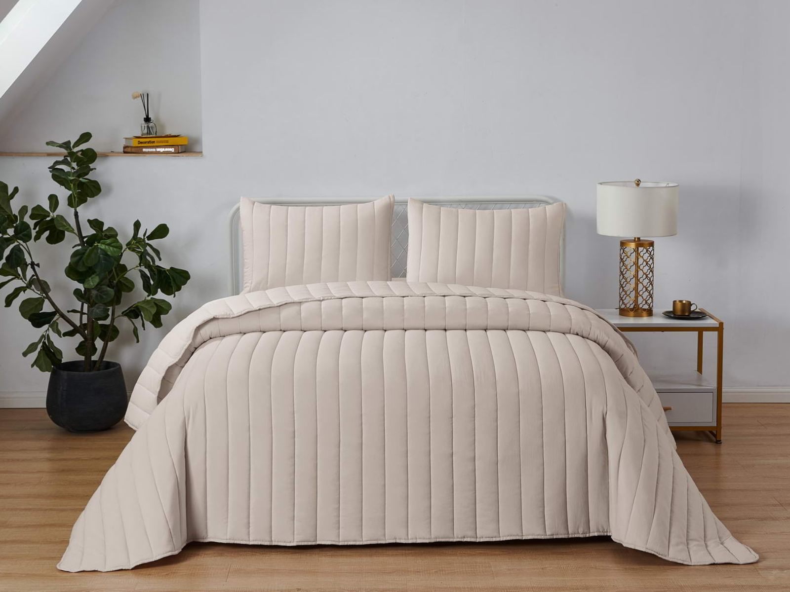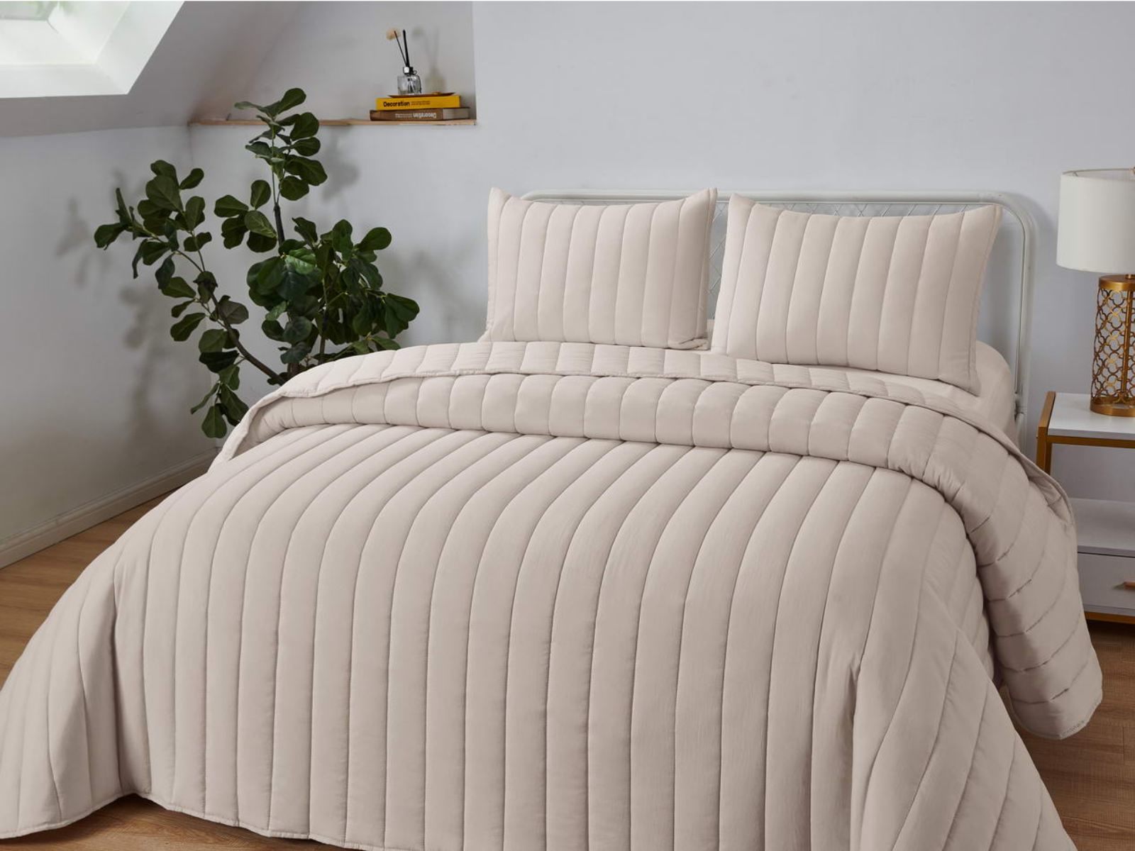 Это не просто практичное и долговечное покрывало. Это универсальное покрывало, которое подойдет к любому интерьеру и разнообразит его. Покрывало можно использовать как легкое одеяло. Оно выполнено в восьми спокойных оттенках: мокко, крем, лиловый, изумруд, розовый, бежевый, серый и пудра. Стеганое покрывало Микаэль прослужит очень долго, оно не полиняет и не вытянется. Стежка придает покрывалам не только прочность, но изысканность и изящество.