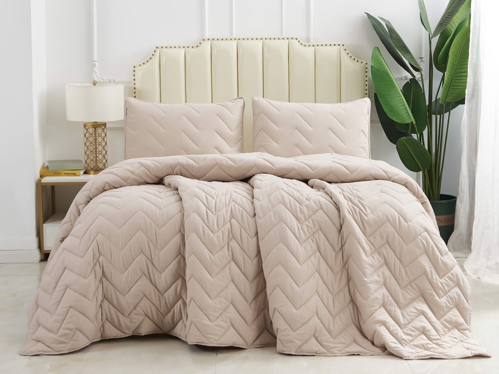В комплект входят покрывало и одна либо две наволочки (50х70 см) из аналогичного материала в зависимости от размера. Изделия гипоаллергенны, они подходят детям и людям с чувствительной кожей. Покрывала и наволочки не линяют, сохраняют форму и цвет при многочисленных стирках и не выгорают на солнце. Изделия можно стирать в щадящем режиме при температуре не выше 30 градусов.