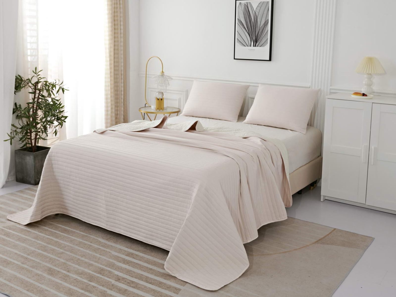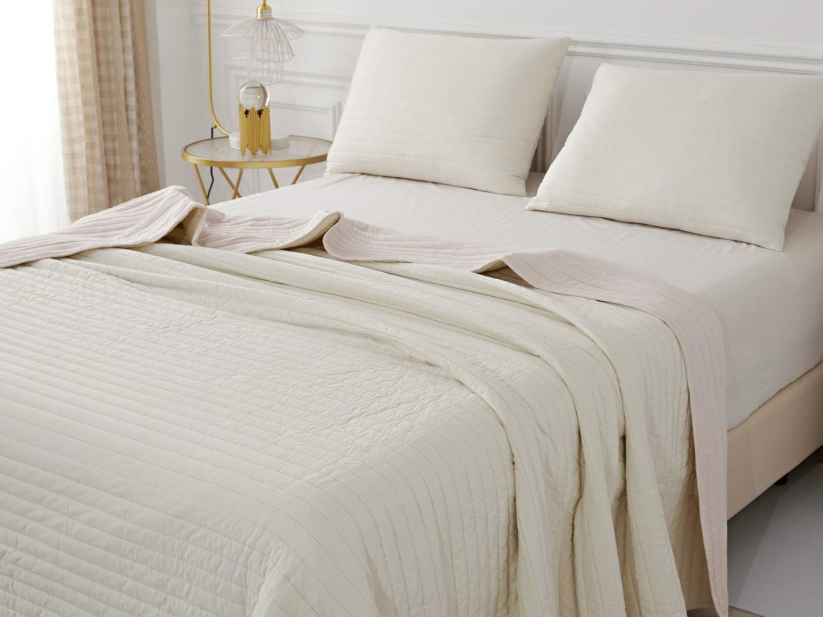 Двусторонние стеганные покрывала Самуэль выполнены из вискозы и хлопка, они легкие и прочные. В комплект входят покрывало и одна либо две наволочки (50х70 см) из аналогичного материала в зависимости от размера, вы можете использовать покрывало по назначению, либо в качестве постельного белья. В любом случае, вы будете в восторге от этого комплекта!