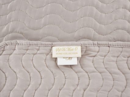 Коллекцию характеризуют сдержанные цвета с широкой палитрой сочетаний: серый, стоун, пудра, кофе, лаконичный волнистый узор, выступающий над поверхностью ткани, объёмная фактура, мягкость и гладкость атласного материала, деликатный кант по периметру изделия.