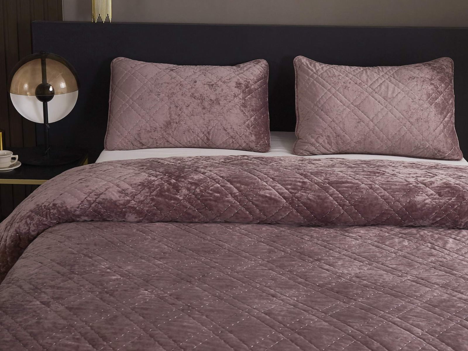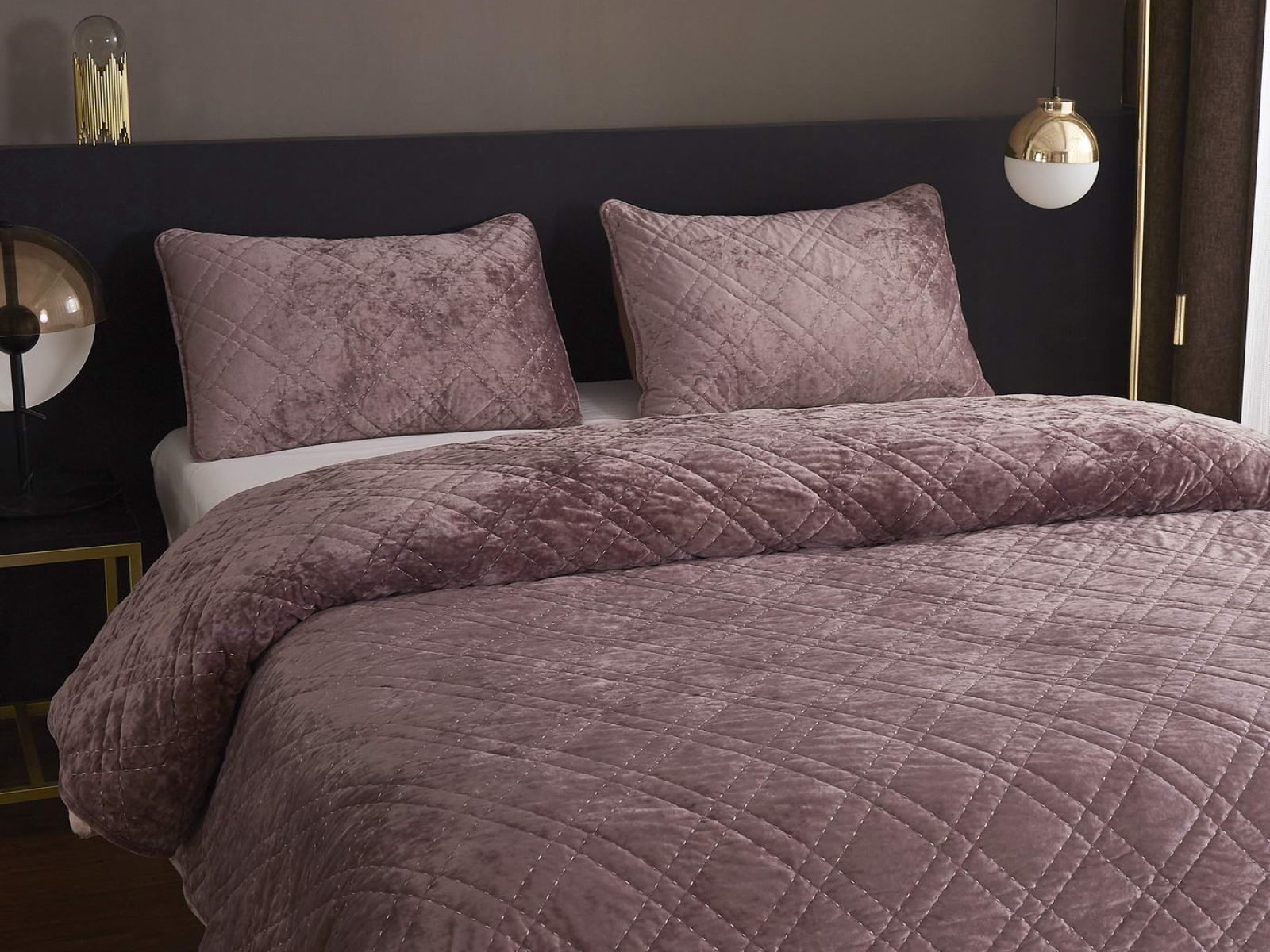 Покрывало Селена выполнено в девяти оттенках: пудра, антрацит, беж, изумруд, капучино, пепел роза, серебро, стоун, терракот. Они подойдут практически для любого интерьера, от классического, до модерна или романтического. Стеганое бархатное покрывало будет необыкновенно смотреться на вашей постели. В комплект входят покрывало и одна либо две наволочки (50х70 см) из аналогичного материала в зависимости от размера.