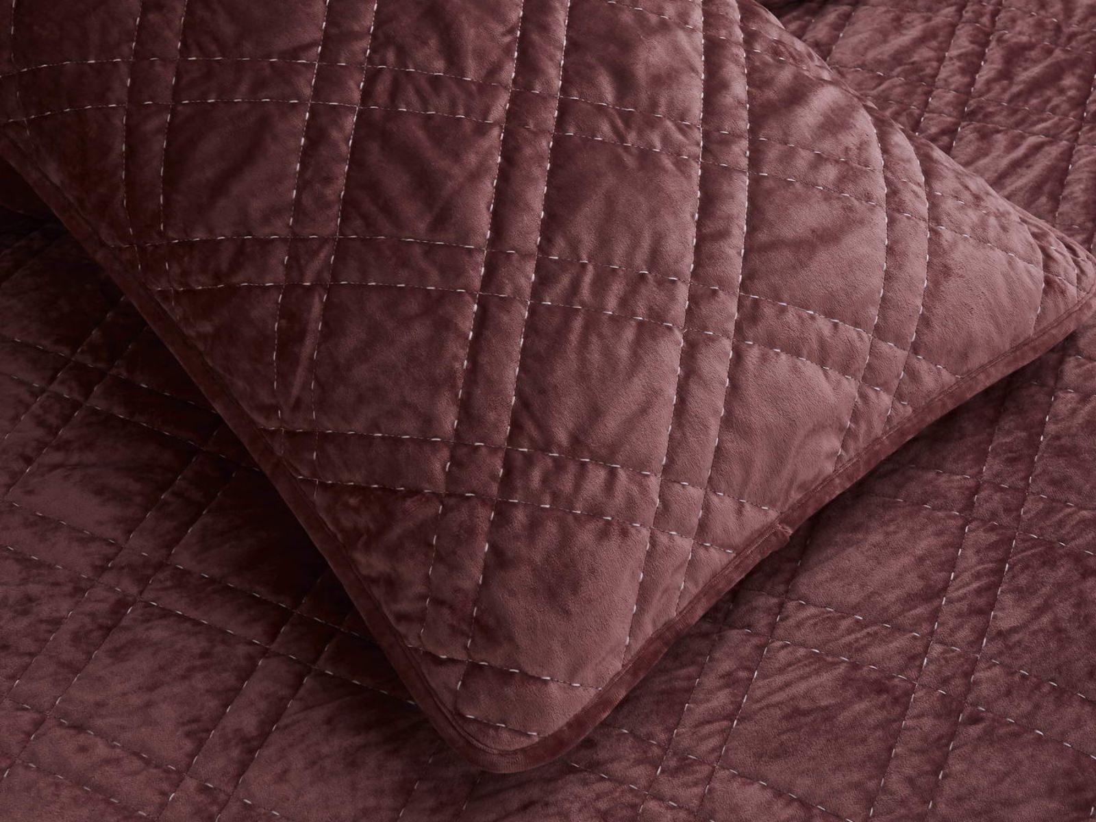 Покрывало Селена выполнено в девяти оттенках: пудра, антрацит, беж, изумруд, капучино, пепел роза, серебро, стоун, терракот. Они подойдут практически для любого интерьера, от классического, до модерна или романтического. Стеганое бархатное покрывало будет необыкновенно смотреться на вашей постели. В комплект входят покрывало и одна либо две наволочки (50х70 см) из аналогичного материала в зависимости от размера.