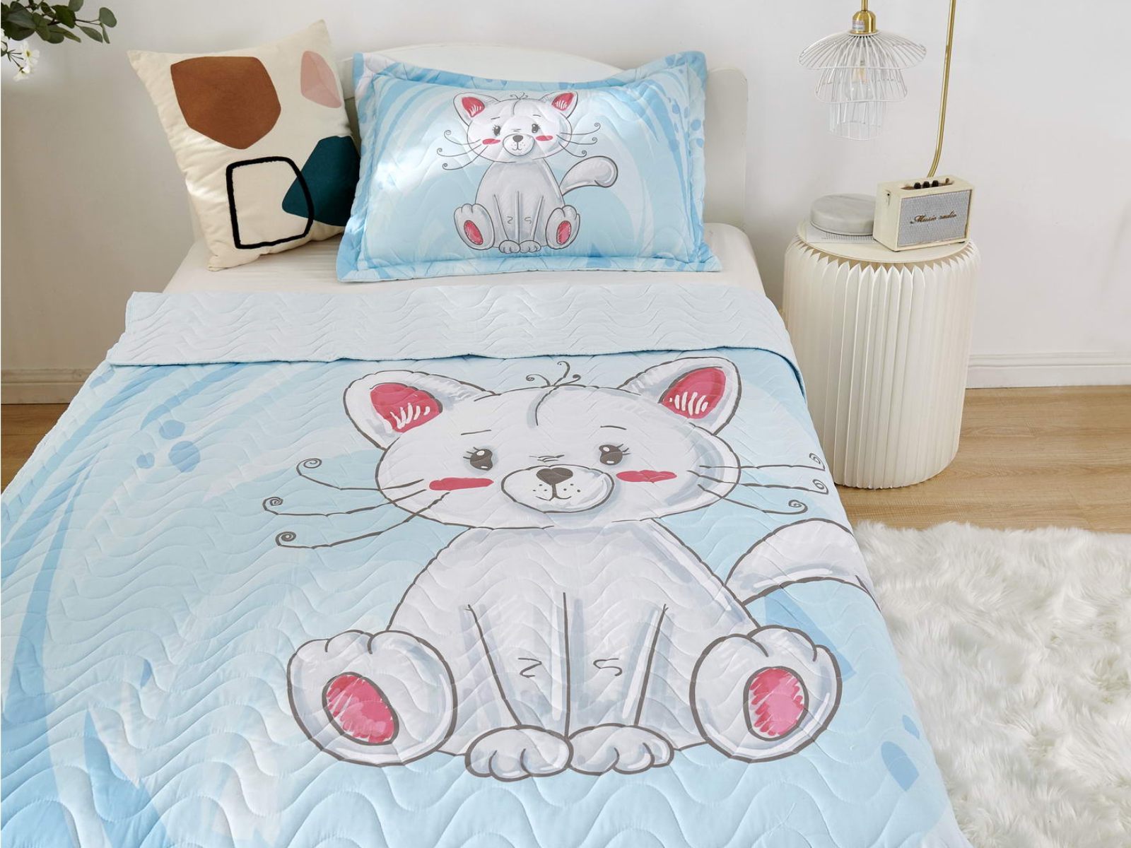 Детские покрывала - это особая забота об уюте и комфорте ребенка. Красивое, стеганое покрывало коллекции «Sunny day» придаст любой детской спальне яркую индивидуальность. Волнистые стежки делают изящные покрывала еще более выразительными и изящными. К ним в комплекте идут наволочки, у них есть интересная особенность, которая непременно понравится ребенку– небольшие ушки.