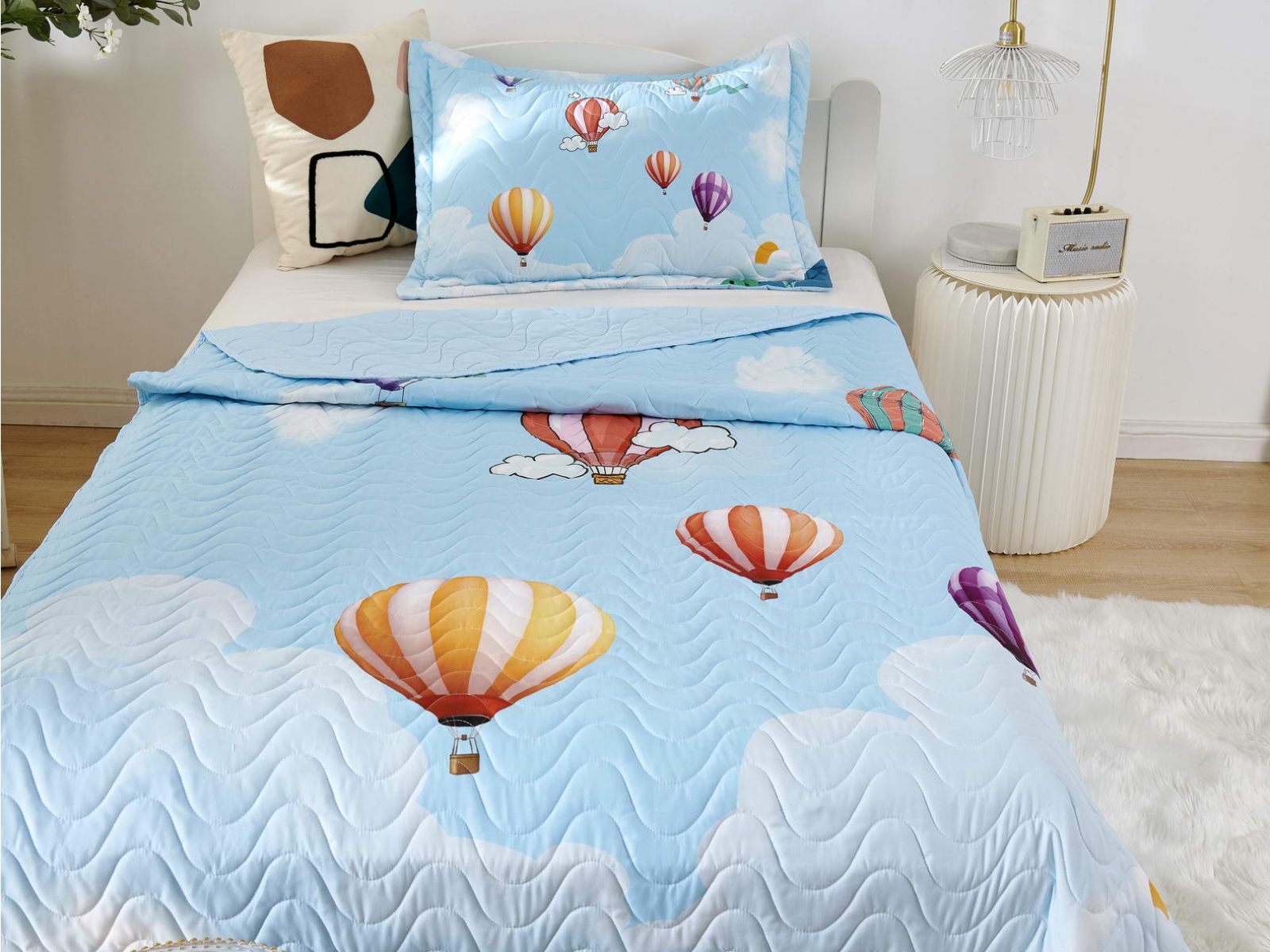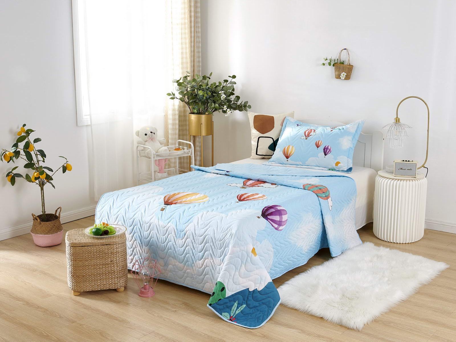 Детские покрывала - это особая забота об уюте и комфорте ребенка. Красивое, стеганое покрывало коллекции «Sunny day» придаст любой детской спальне яркую индивидуальность. Волнистые стежки делают изящные покрывала еще более выразительными и изящными. К ним в комплекте идут наволочки, у них есть интересная особенность, которая непременно понравится ребенку– небольшие ушки.