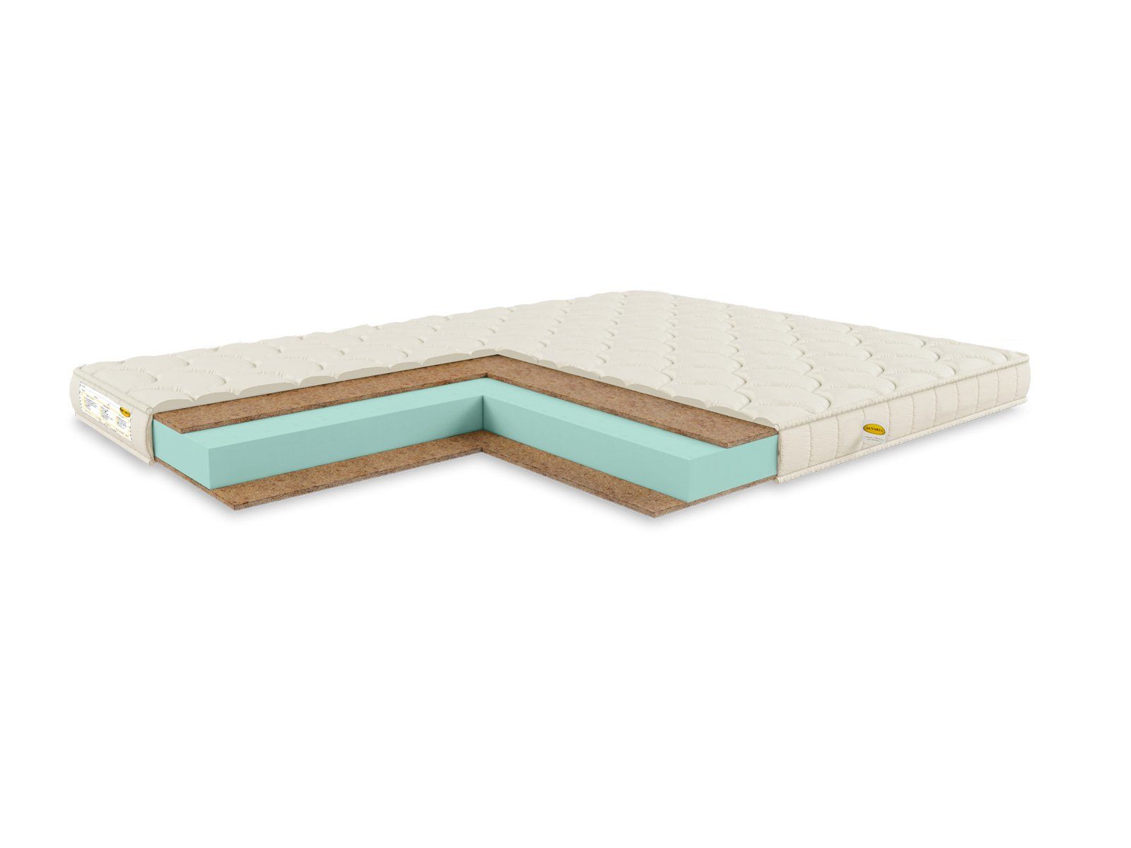 Наполнителями матраса выступают койра кокоса, проложенная сразу с двух сторон, и блок искусственного латекса, который установлен в центре. Таким образом пена даёт изделию упругость, умеренную мягкость и пружинистость. Она отлично гасит лишние колебания, но в то же время распределяет нагрузку и обеспечивает комфорт. Кокос несёт другую функцию – он обеспечивает верхней и нижней спальным поверхностям ортопедический эффект. Матрас естественным образом поддерживает спину, гарантируя тем самым глубокое расслабление.