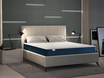 Модель получила стильный внешний вид: чехол матраса исполнен в двуцветной гамме с необычным тёмно-синим бурлетом. Спальные поверхности получили объёмную стёжку по светлому и мягкому трикотажу, что усиливает ощущение уюта и удобства.