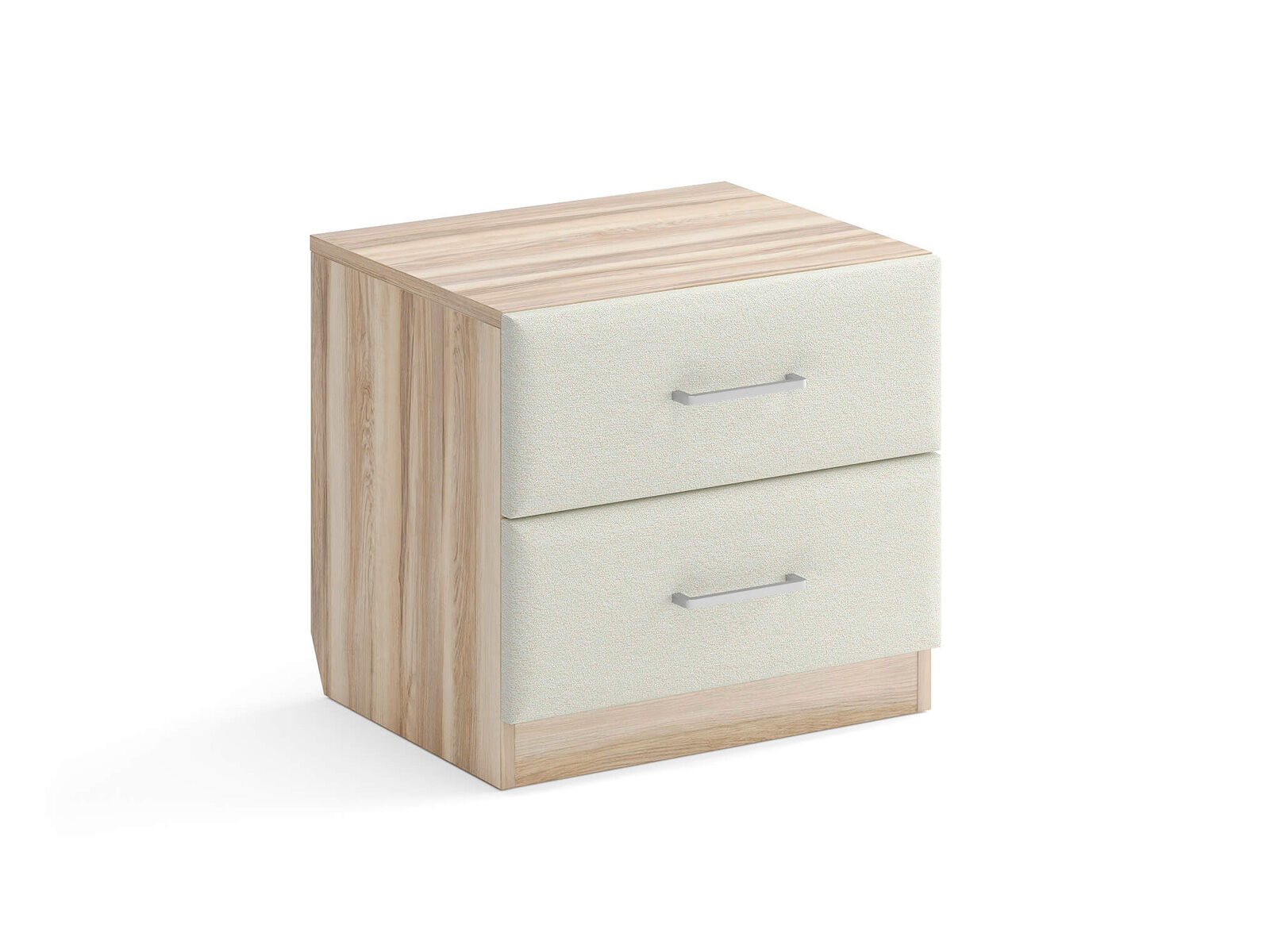 Элегантная комбинированная тумба, сочетающая в себе лаконичность ЛДСП и уют мягких фасадов ящиков, обтянутых тканью. Конструкция тумбы предусматривает два вместительных выдвижных ящика с направляющими скрытого монтажа и доводчиками. Корпус из ЛДСП гарантирует долговечность и устойчивость к механическим повреждениям, а мягкие фасады в ткани и изящные металлические ручки добавят уют. Большое разнообразие текстур и цветовых решений для гармоничной интеграции в любой интерьер.