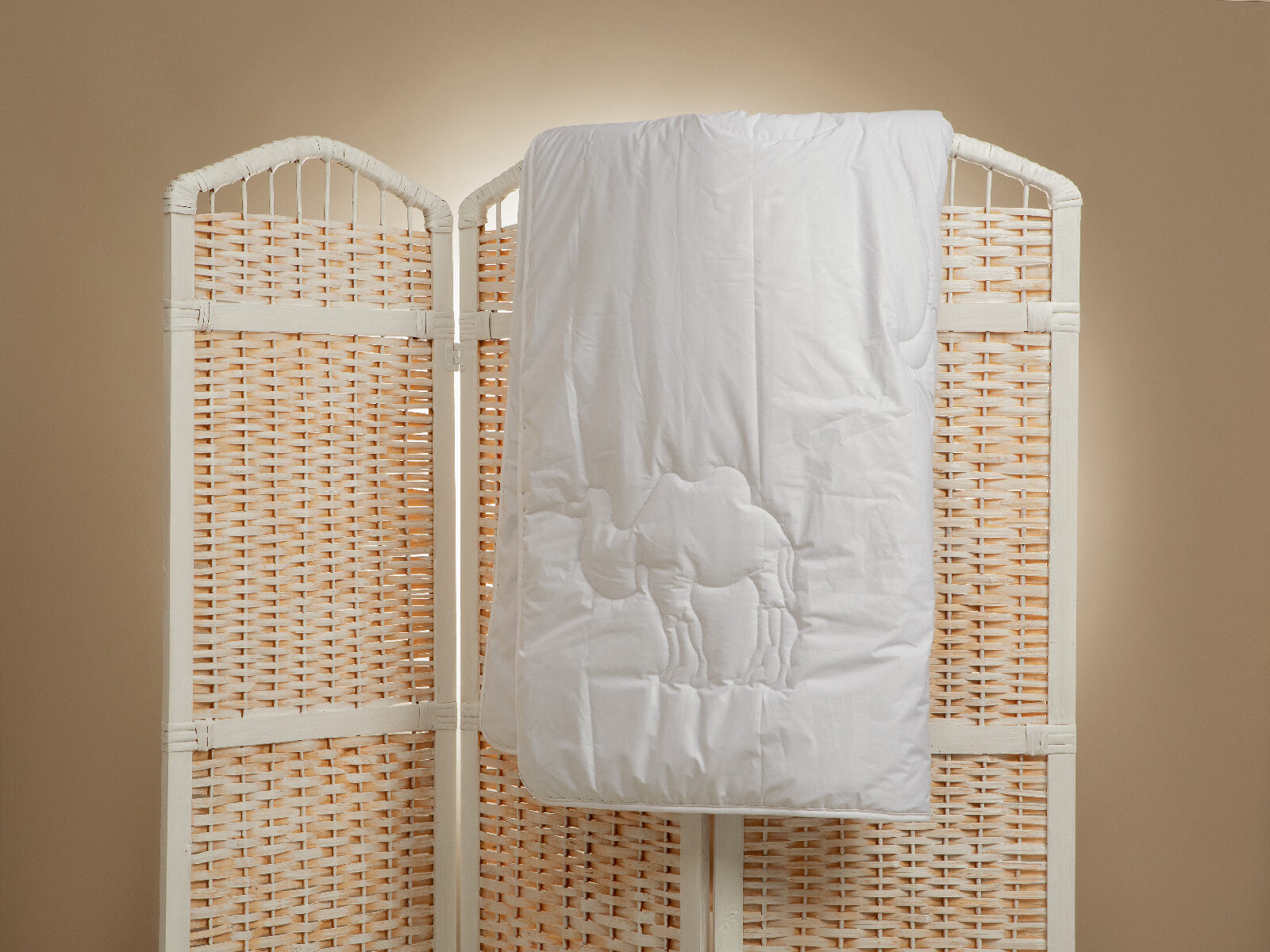 В одеялах коллекции «Верблюжья шерсть» название говорит само за себя, здесь царствует теплая от природы, верблюжья шерсть. Она превосходна своим сухим, терапевтическим теплом, богата животным воском, что позволяет снимать статическое напряжение и оказывать косметическое воздействие на кожу спящего человека. Для исключения миграции шерсти на поверхность ткани в качестве чехла используется пуходержащий тик белого цвета, что позволяет использовать постельные принадлежности любого, в том числе самого светлого, оттенка.